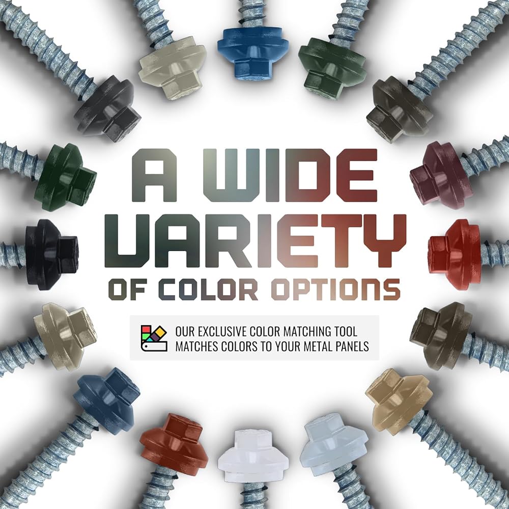 [COATED SCREWS] Feature a tough 2.5 mils of powder coating that will not chalk or fade due to UV inhibitor in all colored coatings. Built to withstand harsh outdoor conditions while maintaining structural integrity