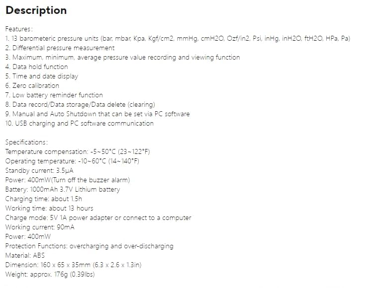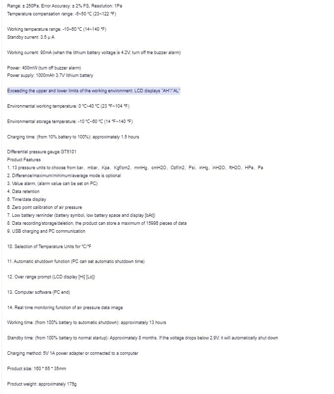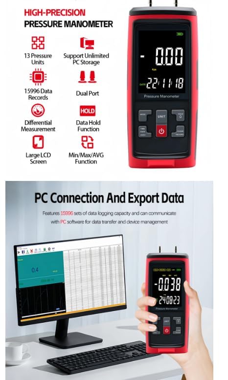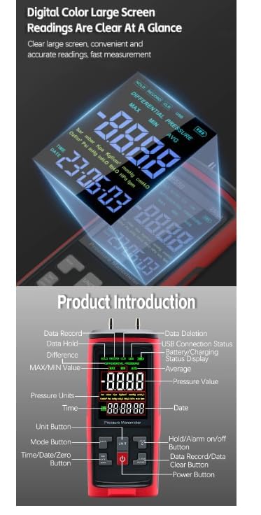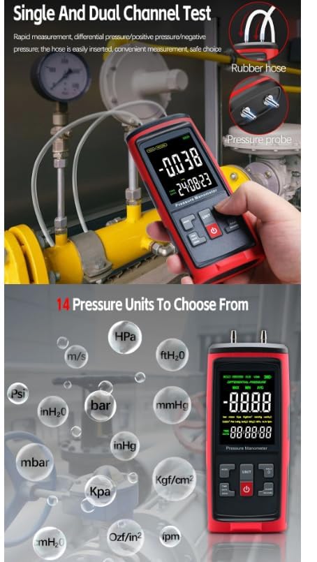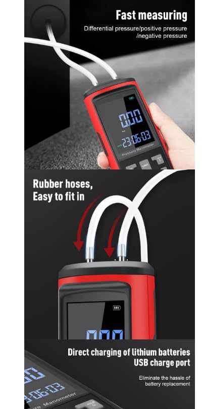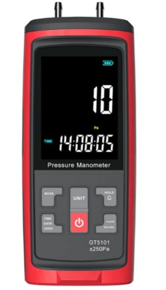 - GT5101 ±250Pa Handheld Pressure Gauge Dual-Port GasPressure Tester Air Pressure Meter Digital Pressure Gauge