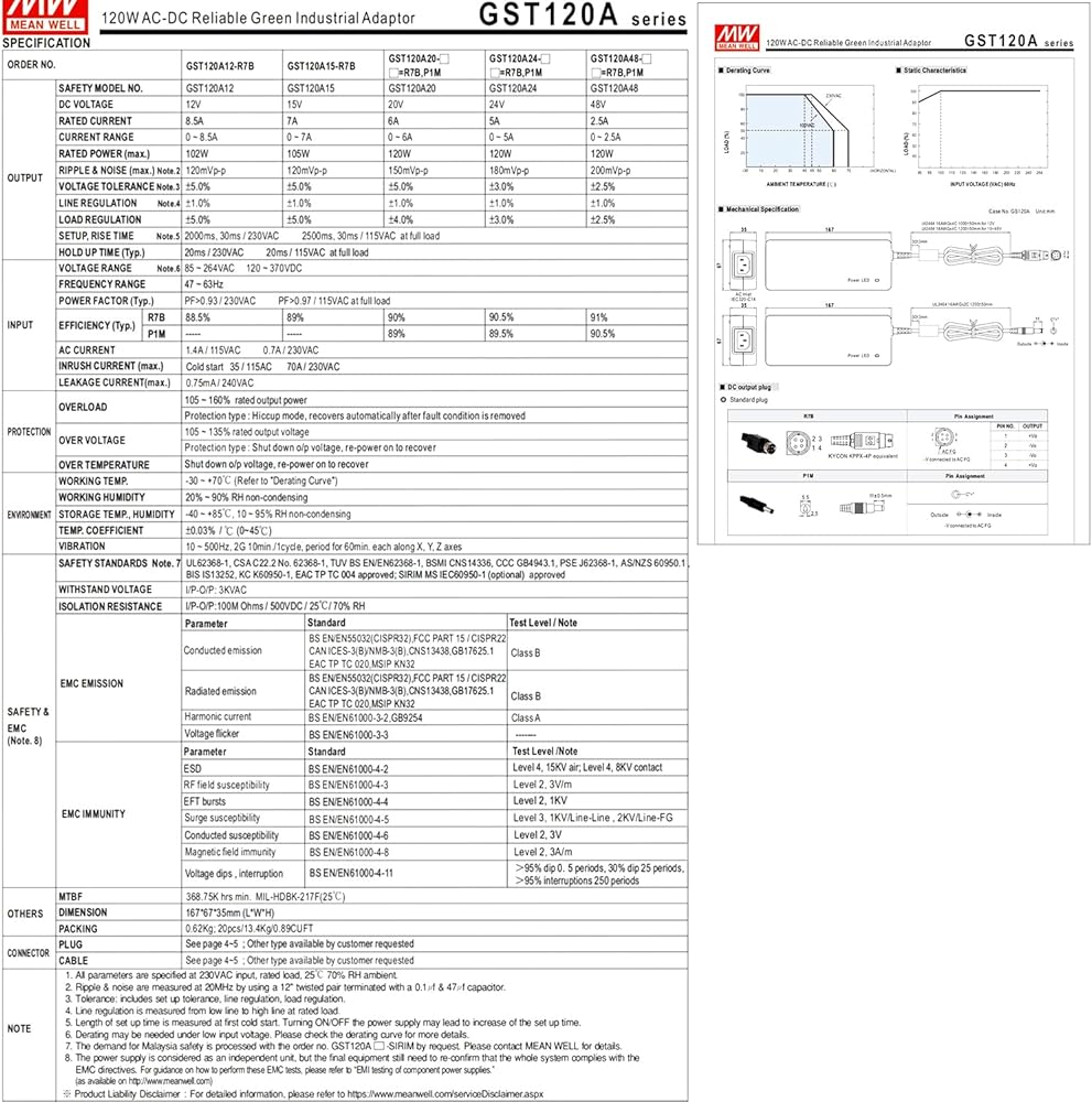 The MedInnov GST120A24-P1M is a high-reliability, single-output switching power supply designed for demanding industrial applications. With a power output of 120W, this unit delivers a stable 24V DC output at 5A, making it suitable for powering a wide range of devices and systems. The GST120A24-P1M boasts an impressive 89.5% efficiency rating, minimizing energy waste and reducing operating costs.