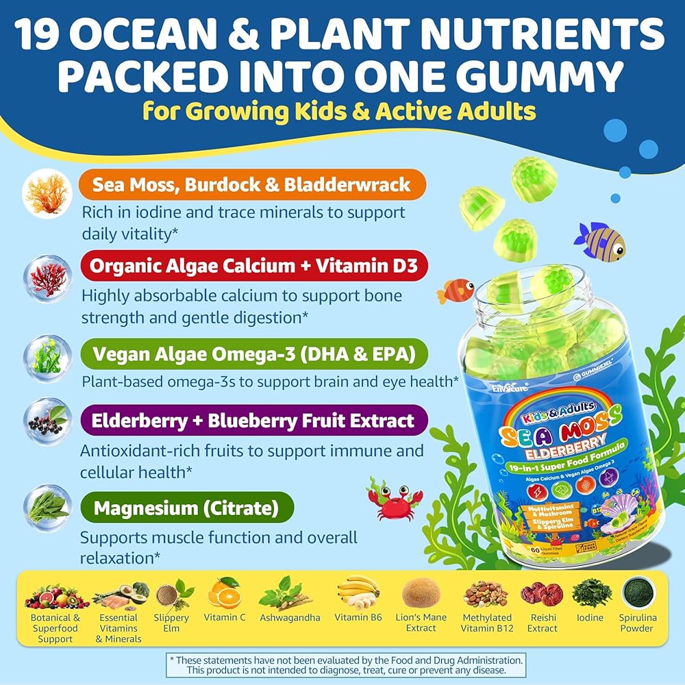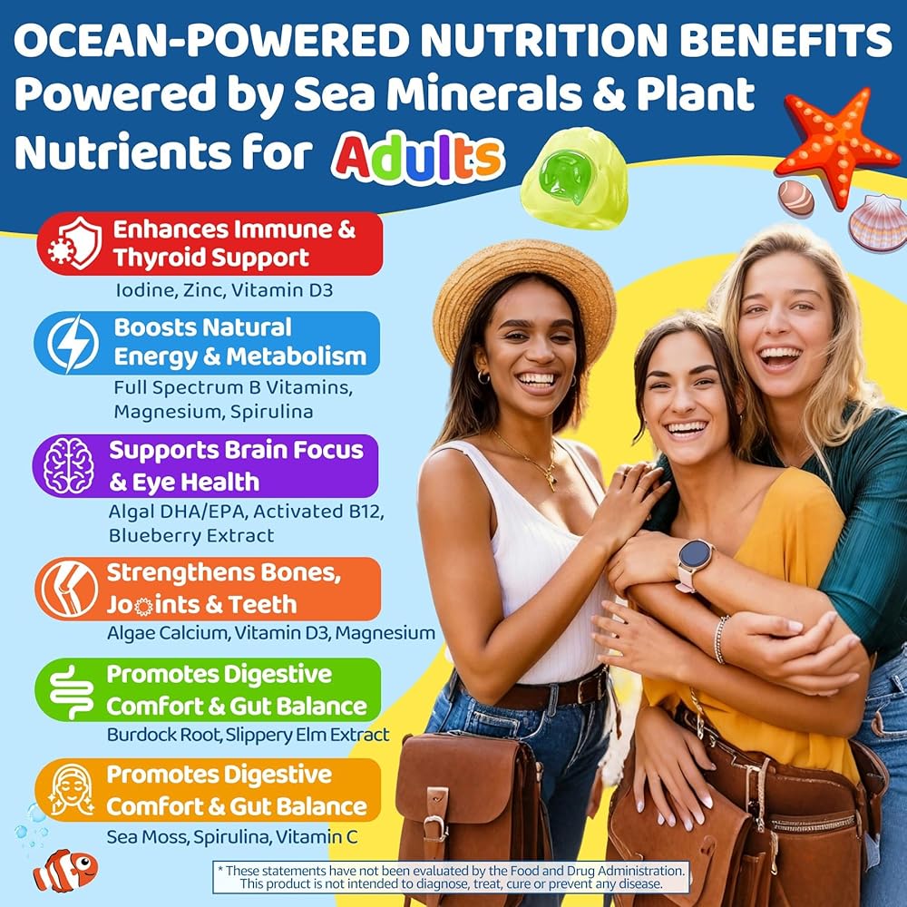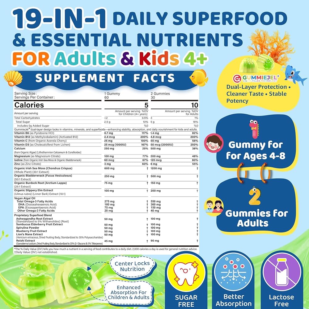 😍 [تركيبة طحالب البحر الممتازة الكل في واحد للأطفال والكبار] - تتميز هذه الطحالب البحرية الكاملة للغاية بمزيج 19 في 1 من المعادن البحرية والفيتامينات والأوميجا 3 النباتية والفطر والأعشاب والأطعمة الفائقة - يتم تقديمها باستخدام تقنية GummieJel المتقدمة مزدوجة الطبقة. توفر مضغة واحدة أو اثنتين يوميًا تغذية واسعة النطاق لكامل الجسم لدعم المناعة والهضم وقوة العظام والمفاصل والطاقة والدماغ وعافية الجلد. تم تركيبه بعناية للأطفال (4+) والكبار للحصول على مذاق نظيف واستخدام عائلي يومي!*