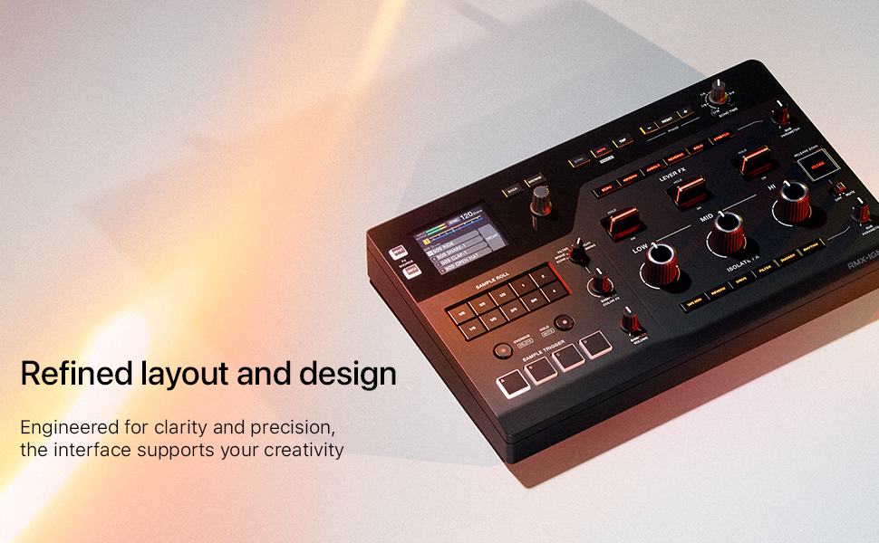 MULTI‑COLOR DISPLAY – Visual Feedback at a Glance. See BPM, FX mode, and sample status clearly—even in low light—so you stay in control.