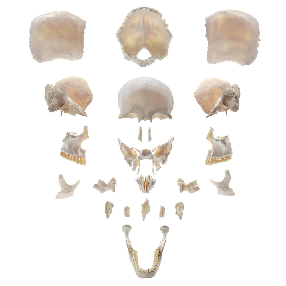 【Precise Anatomy】1: A life sized skull model that accurately replicates 22 detachable bones of the human skull, including the left and right parietal bones, occipital bones, frontal bones, left and right temporal bones, sphenoid and ethmoid bones, Vomer bones, left and right cheekbones, maxilla (including two sets of teeth), left and right palatal bones, left and right turbinates, left and right lacrimal bones, left and right nasal bones, and mandible (including teeth), facilitating in-depth learning of anatomical details