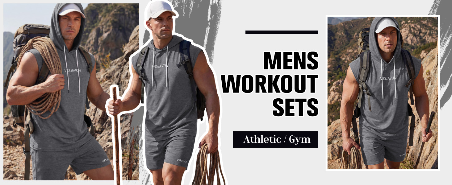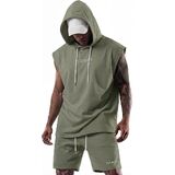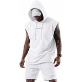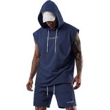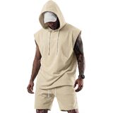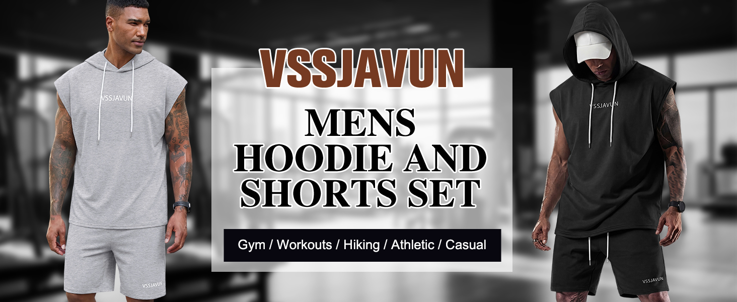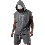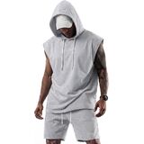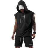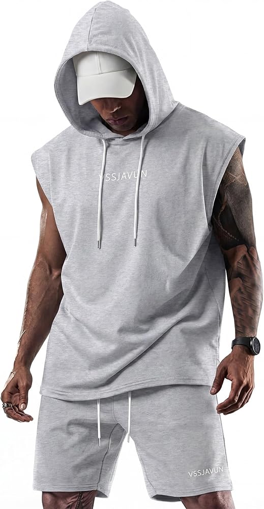 Practical & Adjustable Design: This men's 2-piece short set features a modern cap sleeve cut, a hood with drawstring, and an elastic waistband for a customizable fit. Two large side pockets and subtle branding complete the sporty, functional look.