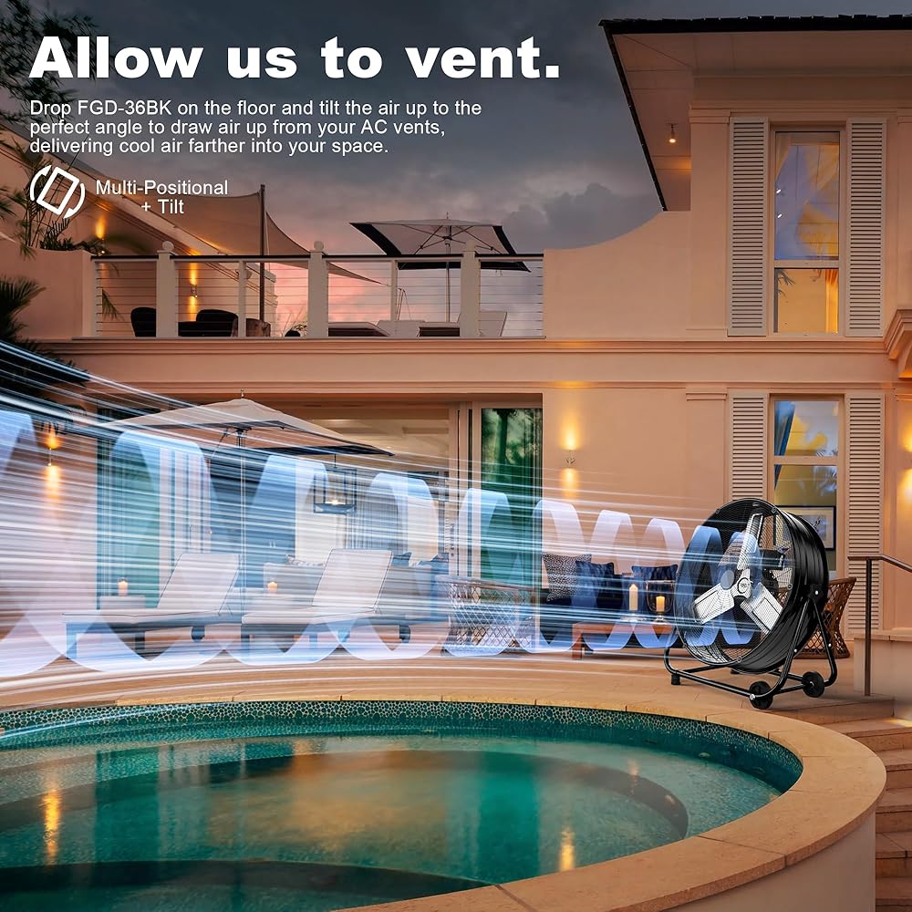 تدفق هواء أكثر تركيزًا: يعمل جسم المروحة الصناعية ذو الحواف وتصميم شفرة المروحة المربعة على تركيز الرياح بشكل أفضل ويسمح لها بالهبوب لمسافة أبعد. يعد تدفق الهواء الكبير للغاية مثاليًا للتهوية الداخلية، كما أن استخدام المحركات والمحامل عالية الجودة داخليًا يسمح للشفرات بالدوران بسهولة. ما عليك سوى تشغيلها فقط على أعلى إعداد عند العمل في المرآب، وستشعر بها أينما تحركت.