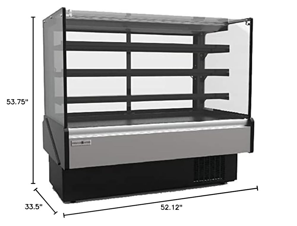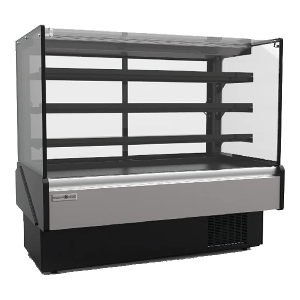Hydra-Kool Bakery Display Case, service, multiplexible, 52-1/8"W x 33-1/2"D x 53-3/4"H, tempered glass sides, rear tempered removable sliding glass doors, PVC gray coated steel interior with (3) adjustable & removable tempered glass shelves, LED interior lighting, 9" top sill, silver front panel, gray kick plate, black ends, adjustable feet, self-contained refrigeration, 1/2 HP, ETL-Sanitation, cETLus