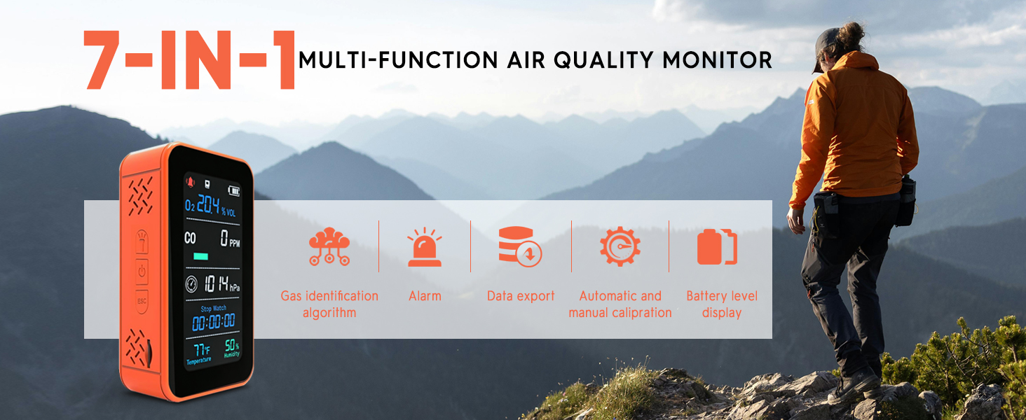 شاشة المغامرات الكل في واحد 7 في 1: تتتبع O₂ وCO والضغط الجوي ودرجة الحرارة والرطوبة لمساعدتك على البقاء على اطلاع في البيئات المتغيرة.