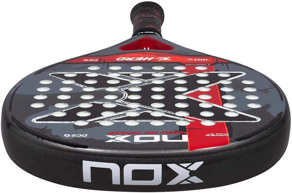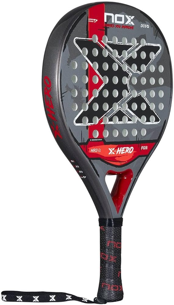 Nox The X-Hero 2026 padel racket is the perfect choice for players who take their first steps in padel or who are looking to establish themselves at an intermediate level. Designed for those who value control, maneuverability and comfort, this racket allows you to enjoy a balanced and fun gaming experience at all times, both in training and in games. Dynamic composite structure (DCS) structural reinforcement minimizes the risk of breakage during off-center impacts and extends the life of the racket. 3K fiberglass faces a triple layer fiberglass fabric that increases resistance and improves ball output. Colour: red.