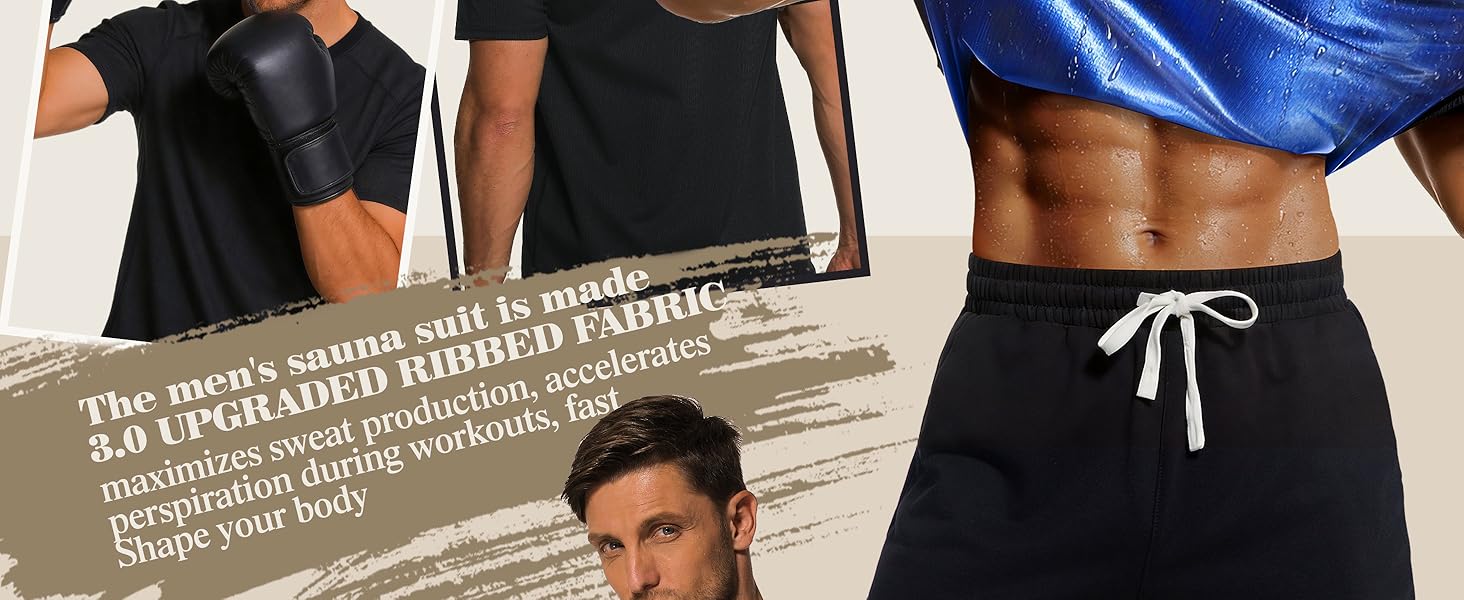 قميص ساونا مطور: قميص ساونا مضلع مطور للرجال لفقدان الوزن يزيد من إنتاج العرق، ويسرع التعرق أثناء التمرين. يحبس قميص بدلة الساونا الرجالي هذا الحرارة ويكثف التعرق الطبيعي 5 مرات أكثر حتى تستمتع بتجربة الساونا الساخنة. المزيد من العرق، وقت أقل