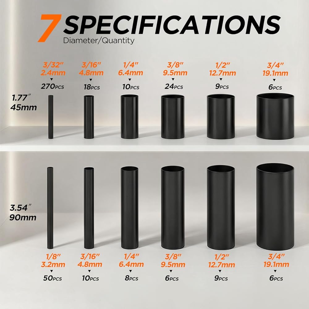 [أحجام متنوعة لإصلاحات أسرع] هل سئمت من إضاعة الوقت في البحث عن أنابيب الانكماش الحراري ذات الحجم المناسب؟ تحتوي هذه المجموعة على 426 قطعة مقطوعة مسبقًا في 7 أقطار شائعة: 3/32 بوصة (270 قطعة)، 1/8 بوصة (50 قطعة)، 3/16 بوصة (28 قطعة)، 1/4 بوصة (18 قطعة)، 3/8 بوصة (30 قطعة)، 1/2 بوصة (18 قطعة)، 3/4 بوصة (12 قطعة)، حتى تتمكن من الحصول على القطعة المناسبة بسرعة وإنجاز المهمة.