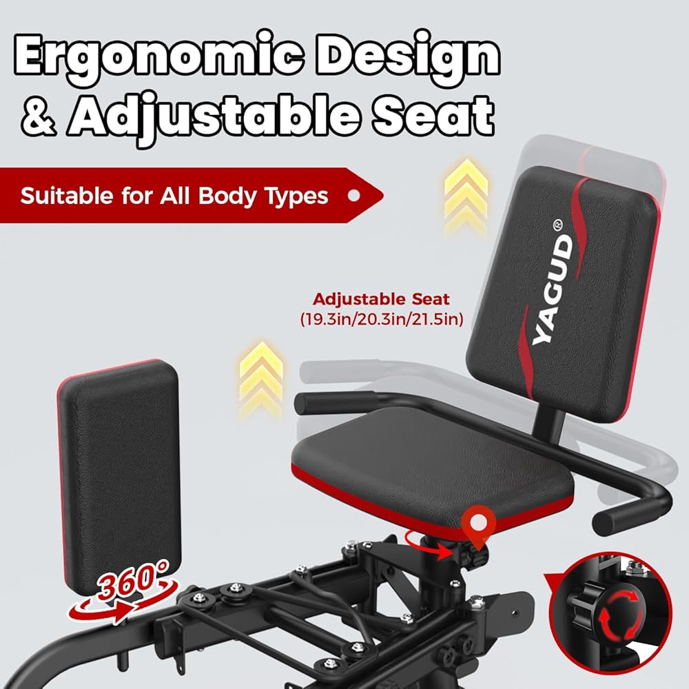 مقعد مريح قابل للتعديل: تم تجهيز معدات تمارين الأرداف والفخذين هذه بمقعد قابل للتعديل بارتفاع 3 مستويات، مكمل بوسائد جلدية سميكة على المقعد ومسند الظهر. إنه يشتت الضغط بكفاءة ويقلل من الانزعاج الناتج عن الاحتكاك أثناء التمرين. تعمل وسادات الدعم الممتدة على تعزيز ثبات الفخذ، بينما تضمن الوسادات الدوارة بزاوية 360 درجة محاذاة الركبة الصحيحة في حركات تقريب الورك وتقريبه. إنه يوازن بين الراحة الاستثنائية ووضعية التدريب القياسية.
