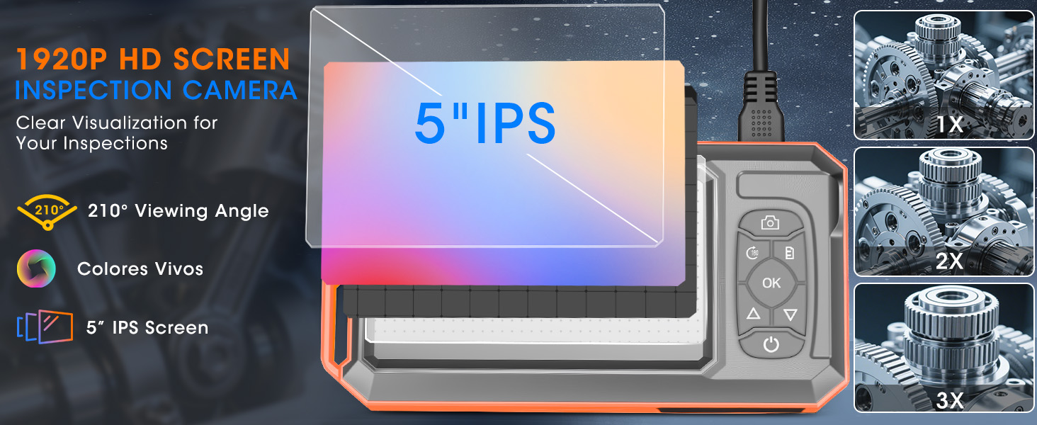 • شاشة IPS مقاس 5 بوصات: كاميرا منظار عالية الدقة مع شاشة IPS مقاس 5 بوصات تسمح لك بمشاهدة صور عالية الوضوح في الوقت الفعلي. سهل التشغيل، يمكنك استخدامه على الفور عند تشغيله. ملاحظة: تأتي كاميرا borecope مع بطاقة سعة 32 جيجابايت، ويمكنك التقاط الصور والصور مباشرة.