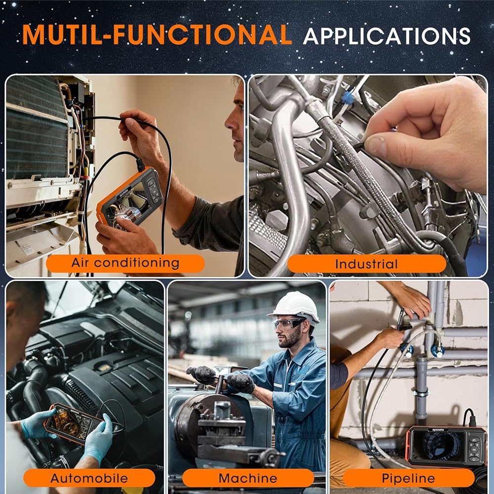 • سهولة الإعداد والتطبيقات المتعددة: يمكن استخدام منظار الصرف الصحي هذا بمجرد تشغيله، مما يوفر الوقت. يحتوي منظار الفحص هذا على مجموعة واسعة من التطبيقات، بما في ذلك صيانة وإصلاح السيارات، والتحقق من انسداد الأنابيب، ويمكن استخدامه أيضًا لعرض المساحات الضيقة التي يصعب الدخول إليها، مثل تحت الأسرة أو خلف أجهزة التلفزيون، مما يوفر راحة كبيرة للحياة اليومية.