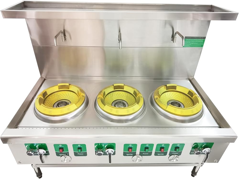 13'' Commercial Gas Stove, Triple Burner, Open Style, 25000W, Stainless Steel, LPG & Natural Gas