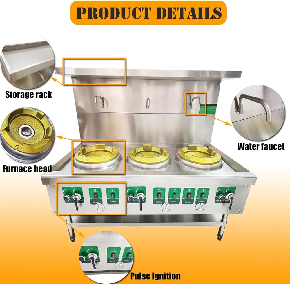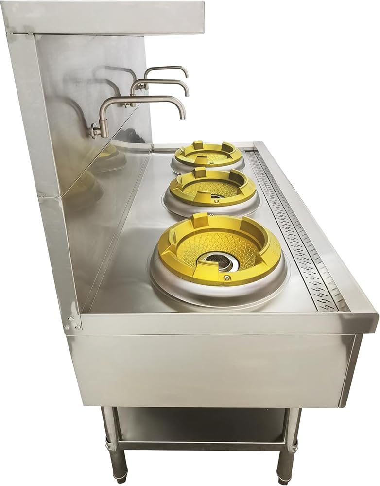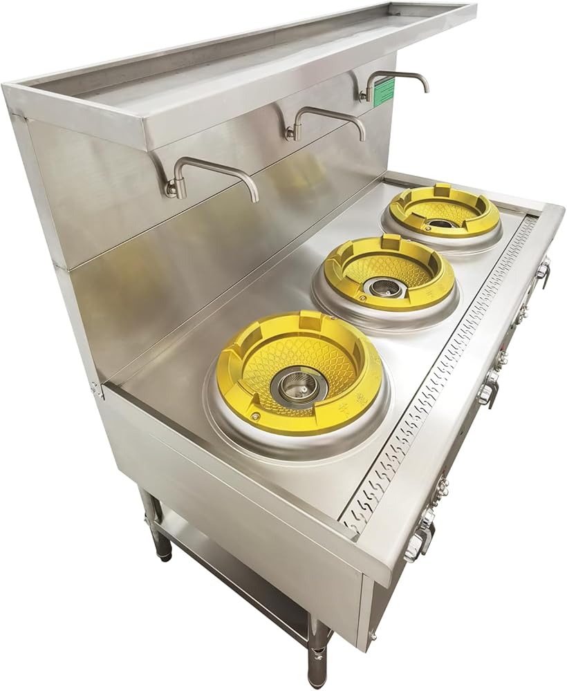 • Easy To Use: It is equipped with sewage pipes and baffles, which can filter solid waste. The sewage and oil generated during use can be discharged through stainless steel drainage channels, and the drainage channel baffle is detachable. The faucet on the top of the stainless steel water basin can be used to add water at any time when stir frying vegetables and cleaning the wok.