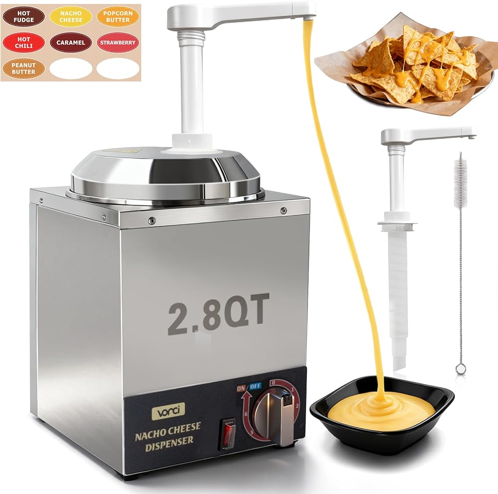 موزع جبن عالي الجودة: يتميز موزع جبن الناتشو التجاري المزود بمضخة بلاستيكية بتصميم مدمج مع بصمة قدم صغيرة. مصنوع من الفولاذ المقاوم للصدأ الآمن غذائيًا مع جدران سميكة معززة، ويحافظ على الصلصات في درجات حرارة مثالية للحصول على قوام ناعم ولذيذ وجاهز للتقديم. يضمن الفولاذ المقاوم للصدأ والمقاوم للحرارة السلامة والمتانة.