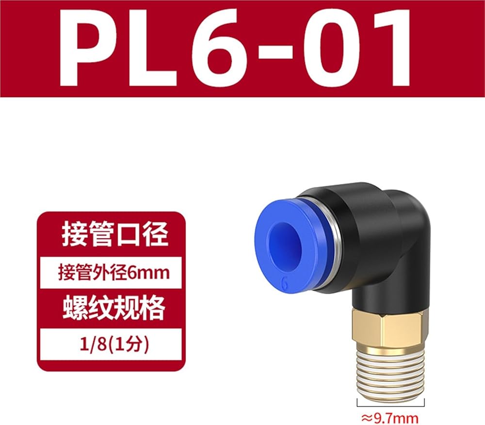 هوائي المقابس السريعة PL8-02 الزاوية اليمنى الخيوط الكوع القصبة الهوائية مضخة الهواء موصل ملحق 4-M5/6-01 1 قطعة (PL6-01)