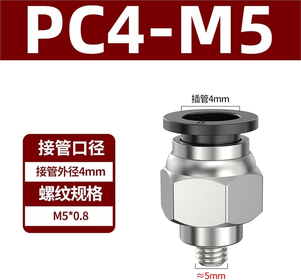 Pneumatic Copper Quick Connector Thread Straight PC4-M5 8/10-02 Trachea 6-01/12-04 Black And White 1Pcs