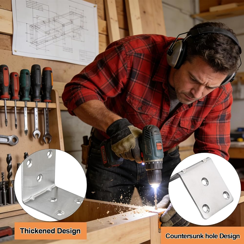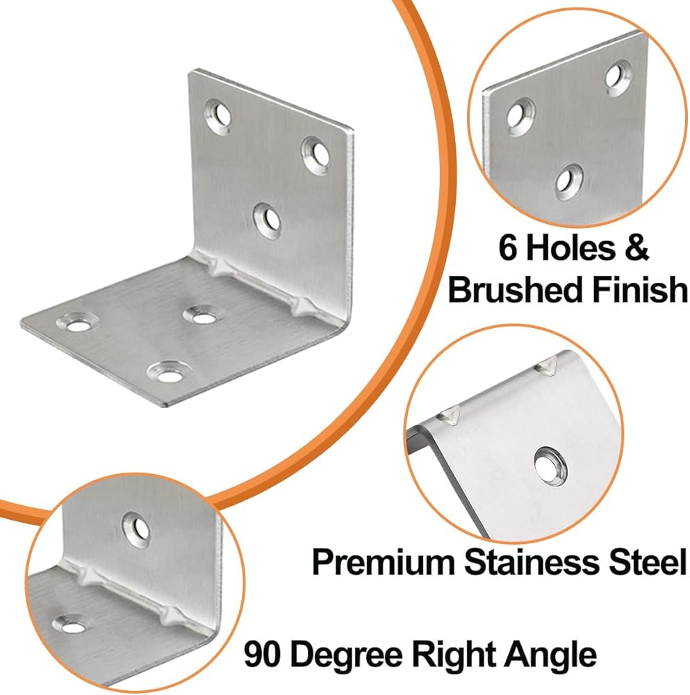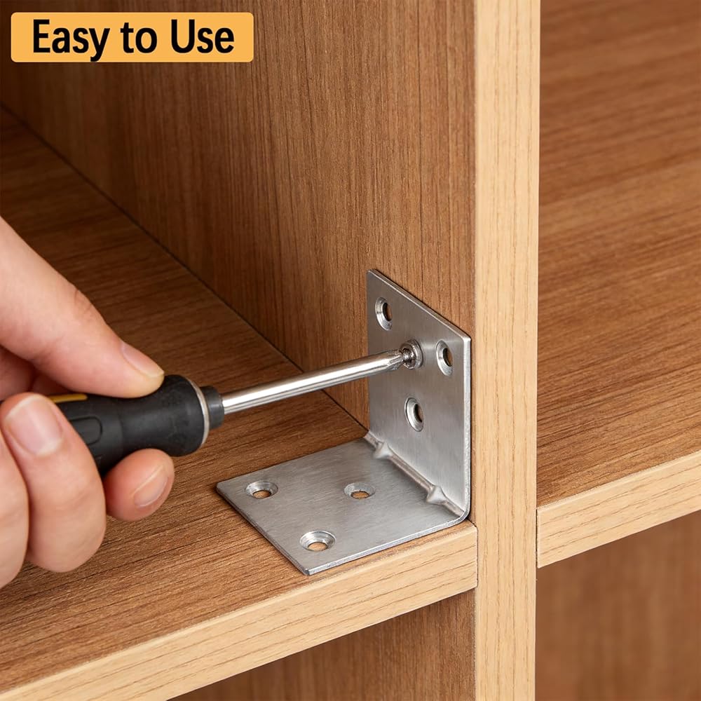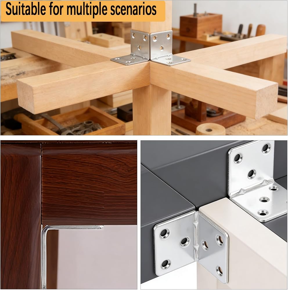 【تركيب بسيط وسريع】 مصممة لسهولة الإعداد والإزالة، توفر دعامات الزوايا المعدنية هذه الوقت والجهد أثناء التثبيت أو التفكيك. تصميمها سهل الاستخدام يجعلها خيارًا عمليًا لكل من مشاريع الأعمال اليدوية والإصلاحات الاحترافية