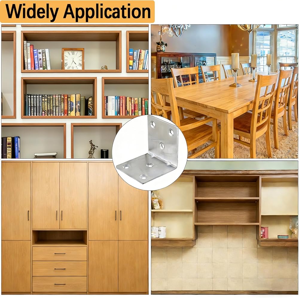 استخدام واسع: دعامات معدنية فضية مناسبة جدًا للاستخدام في الأماكن المغلقة أو الهواء الطلق، وتستخدم على نطاق واسع في إصلاح وتعزيز أرفف الكتب والخزائن والخزائن والأثاث والنوافذ والكراسي، وسوف تجلب الكثير من الراحة لحياتك