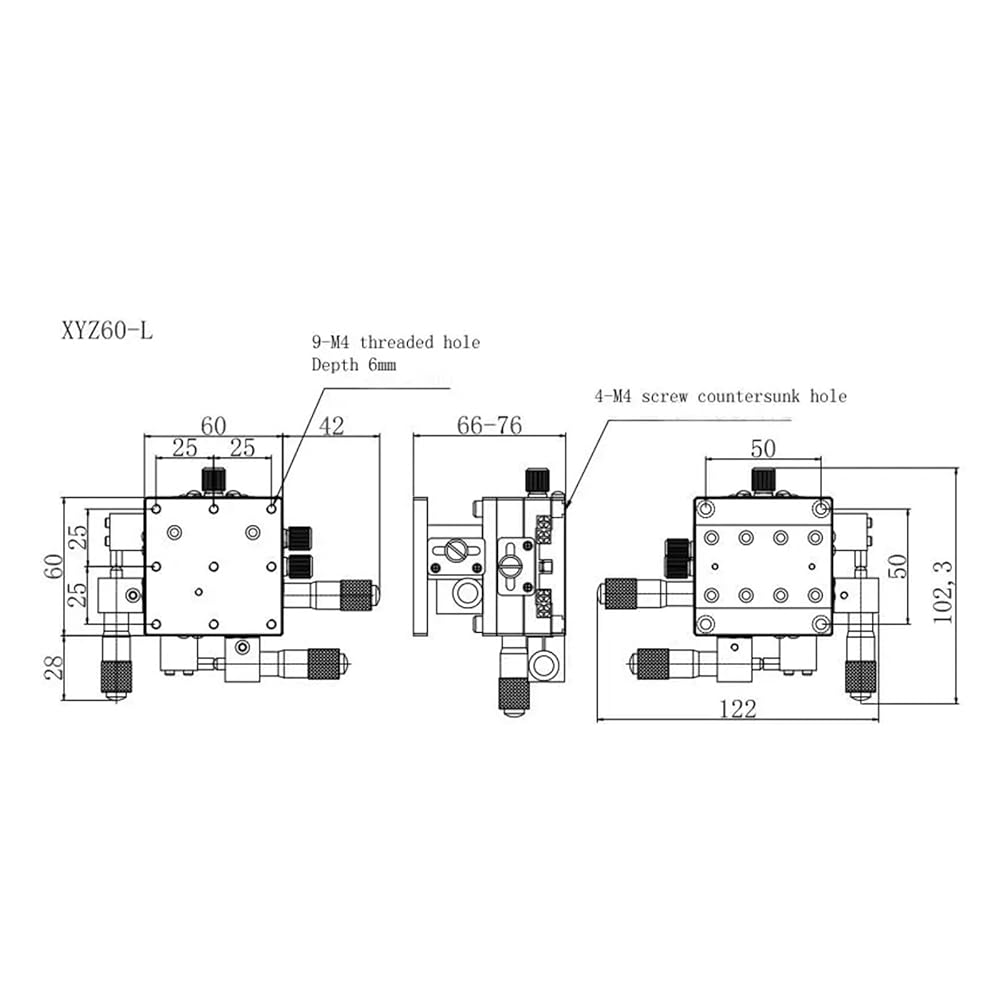 XYZ طاولة إزاحة ثلاثية المحاور 60 * 60 مم XYZ60-L، الحمولة: 29.4N 3 كجم