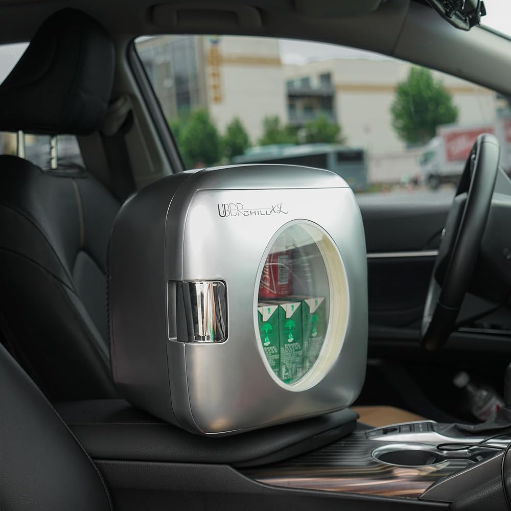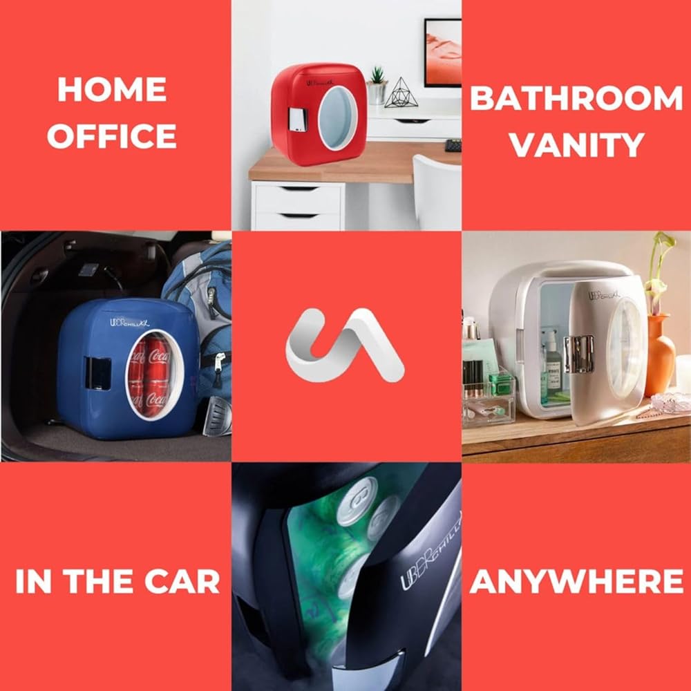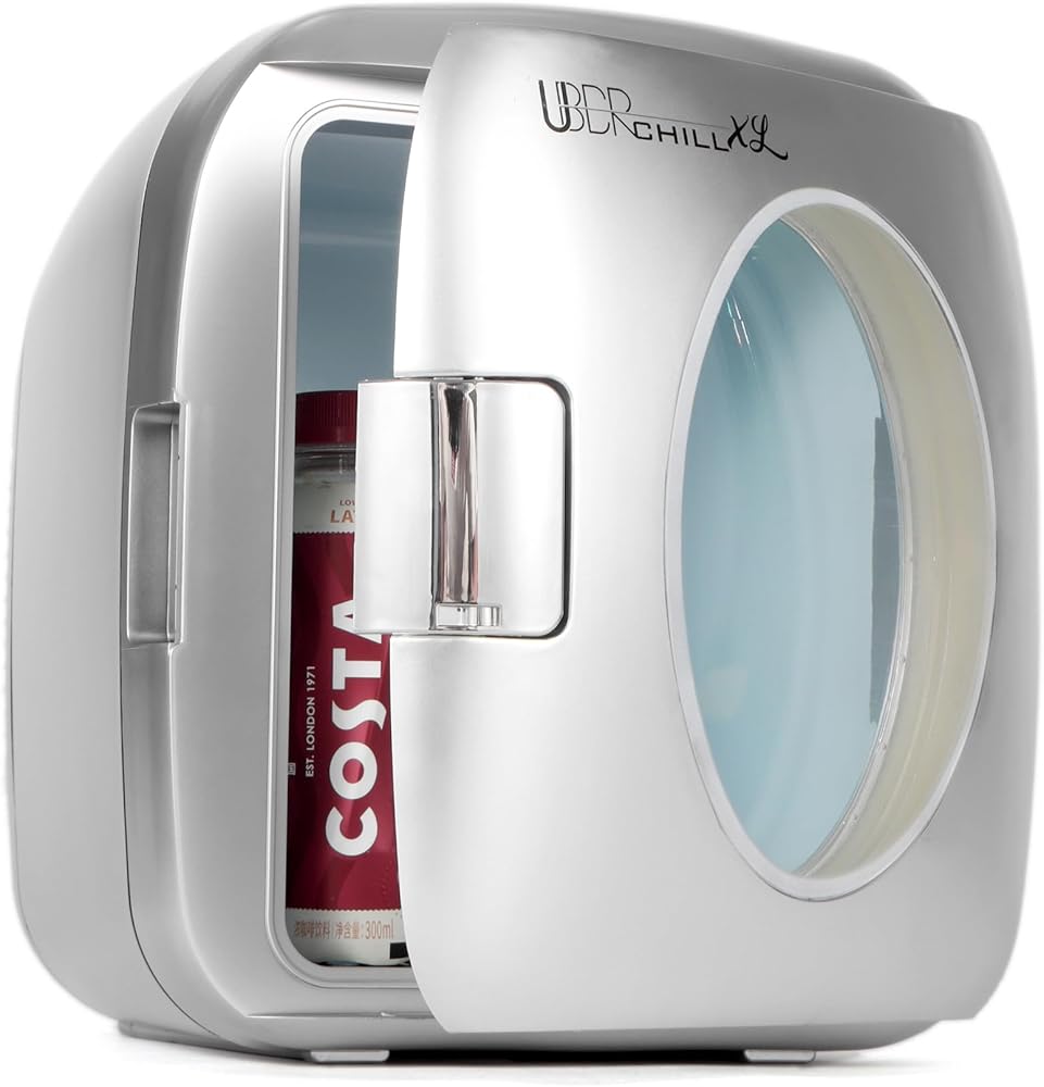 ثلاجة مكتبية محمولة للمشروبات من Uber Chill XL بسعة 12 علبة بسعة 9 لتر، مناسبة لغرفة النوم أو مكتب غرفة النوم أو الحضانة أو السيارة أو القارب أو عربة سكن متنقلة صغيرة دافئة ومبردة