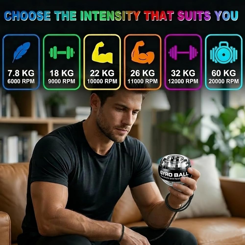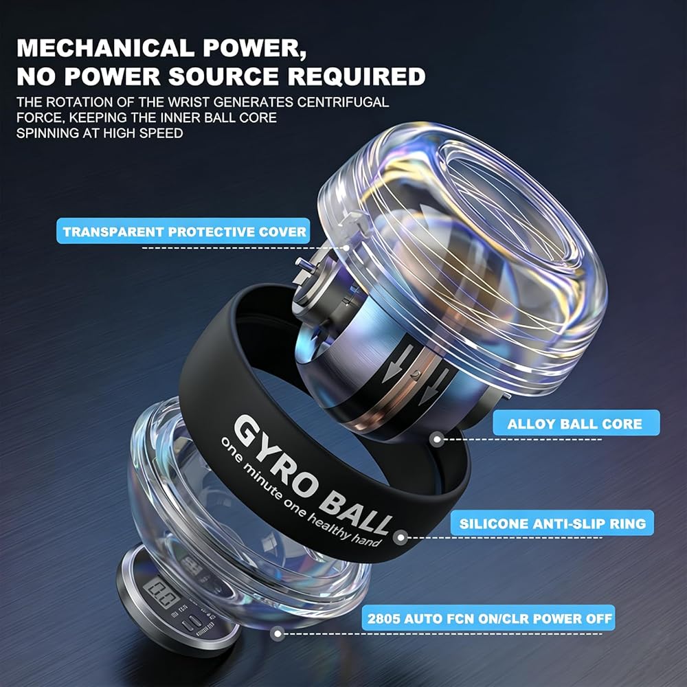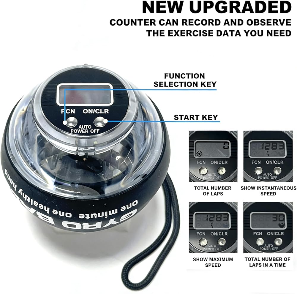 كرة عزم الدوران ذات التشغيل التلقائي مع عداد LED - مقوي للمعصم والساعد - تمرين اليد الجيروسكوبي لقوة القبضة والمرونة والحيوية اليومية