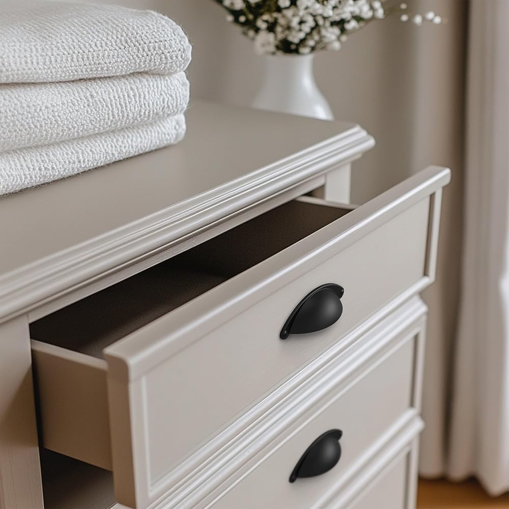 【التثبيت】: يتضمن براغي أجهزة الخزانة مقاس 1 بوصة و1.5 بوصة للتركيب بدون متاعب. أدخل المسمار من خلال الجزء الخلفي من باب الخزانة أو الدرج وقم بتثبيت مقابض الكوب للأدراج.