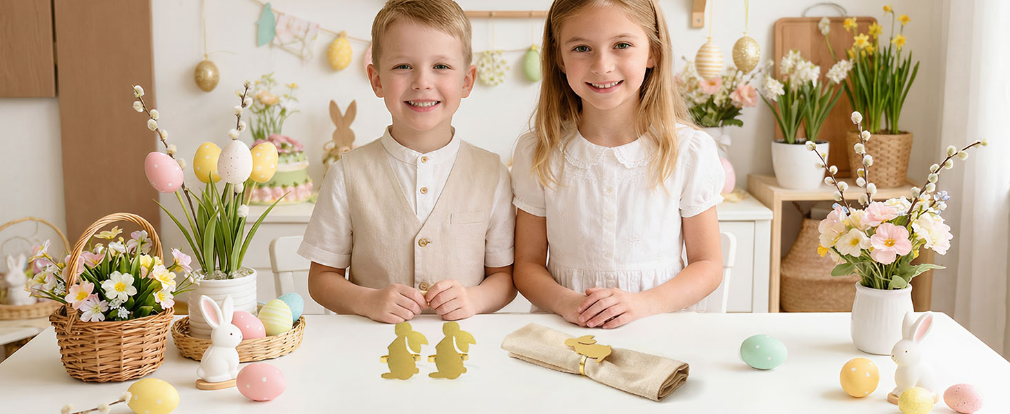 تصميم أرنب رائع لعيد الفصح وما بعده - تضفي حلقات المناديل الساحرة هذه على شكل أرنب أجواءً مرحة واحتفالية على طاولتك. مثالية كحلقات مناديل عيد الفصح أو لاحتفالات الربيع، مما يضيف لمسة موسمية مبهجة.