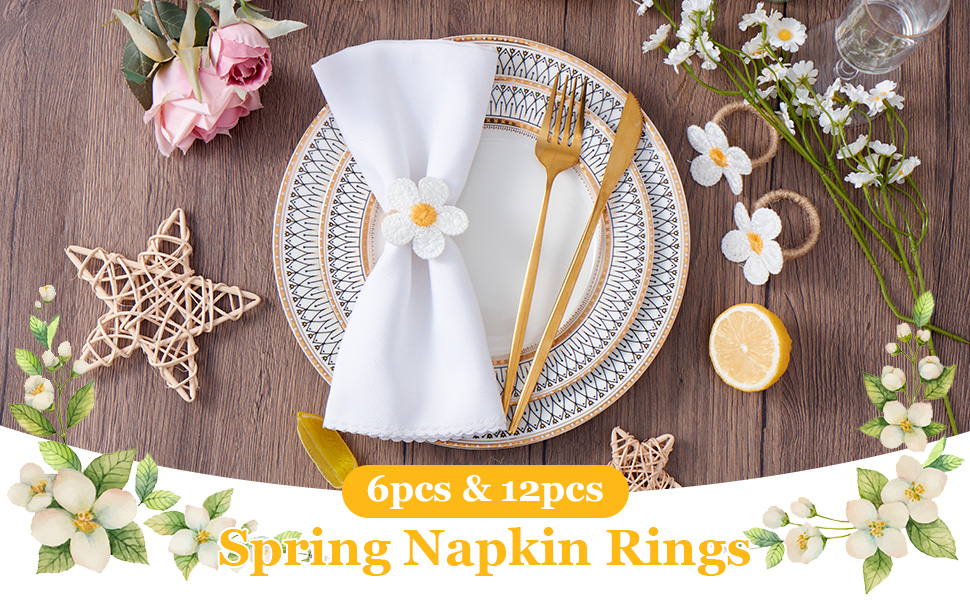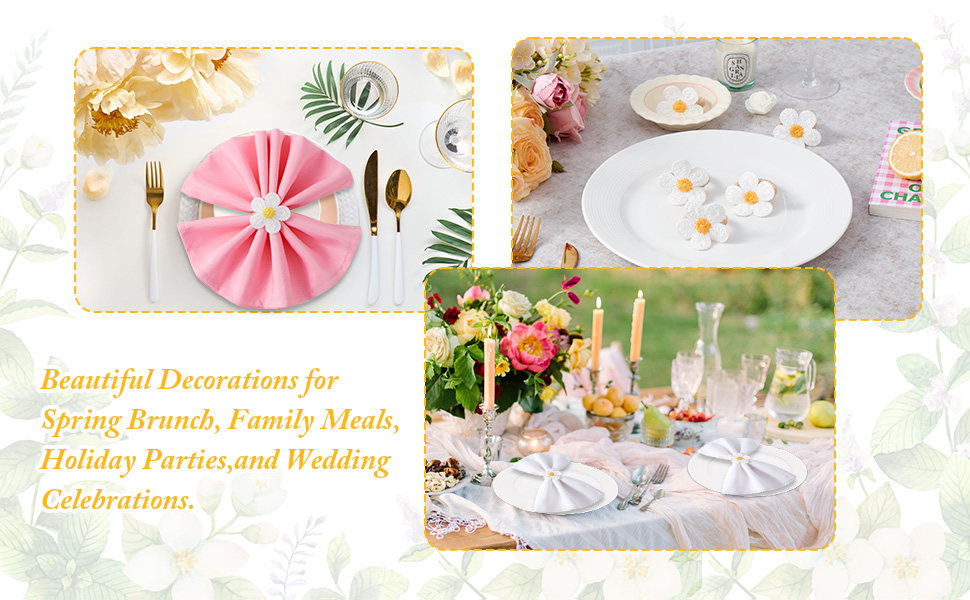 【ديكور متعدد الاستخدامات】: حلقات المناديل ذات الزهور البيضاء هذه مثالية لمجموعة متنوعة من المناسبات، بما في ذلك ديكورات الطاولات في فصل الربيع، وحفلات الحديقة، والتجمعات العائلية، والاستخدام اليومي. إنها تضفي لمسة مشمسة وحيوية على أي مكان، مما يخلق جوًا دافئًا ومبهجًا.