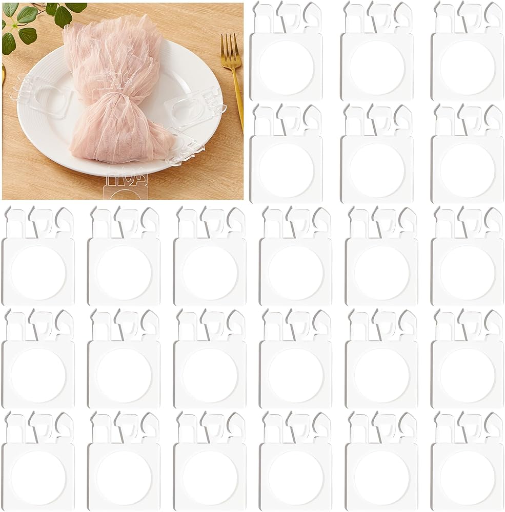 استخدامات متعددة: تُستخدم حلقات المناديل الأكريليك هذه في المقام الأول لتزيين المناديل وأدوات المائدة الأخرى. تضمن مادة الأكريليك الناعمة عدم خدش نسيج المناديل. بالإضافة إلى ذلك، يمكن استخدامها كديكور للطاولة، أو كديكور لزجاجات النبيذ، أو حتى كأقلام تحديد مؤقتة للضيوف.