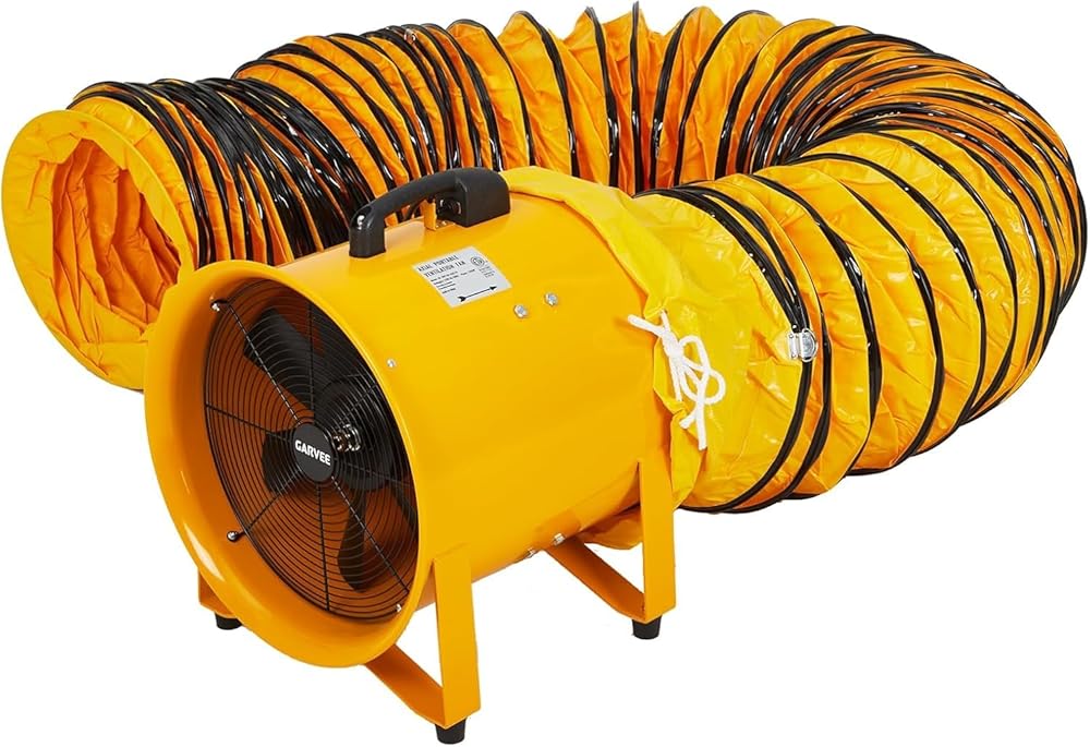Versatile Applications – Workshops, Basements, Attics: Ideal for crawl spaces, basements, attics, warehouses, paint booths, and confined spaces. The flexible PVC duct extends reach for intake or exhaust scenarios.