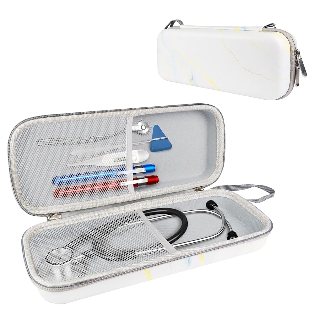 ✔ Universal Fit – Fit for Littmann, MDF, and all standard stethoscopes (Compatible with Cardiology III/IV, Classic III, etc.). Also accommodates bandage scissors and so on ✔ Rugged Yet Lightweight – Made from crush-resistant EVA shell with a soft interior lining to prevent scratches and damage to sensitive equipment.