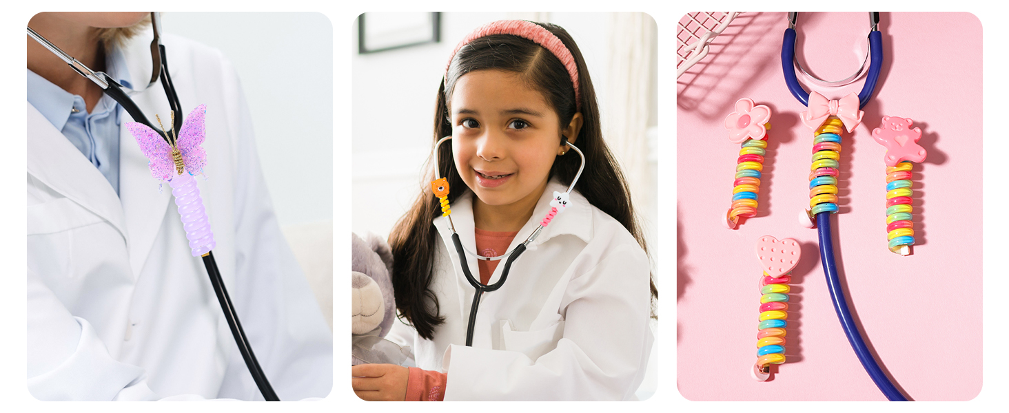• تصميم أنيق وممتع: تتميز هذه القلادات اللطيفة بتصميمات لطيفة متنوعة تضيف حيوية وشخصية إلى ملحقات سماعة الطبيب الخاصة بك، مما يجعل معداتك الطبية أكثر متعة وجاذبية للأنظار، وترفع مزاجك أثناء العمل