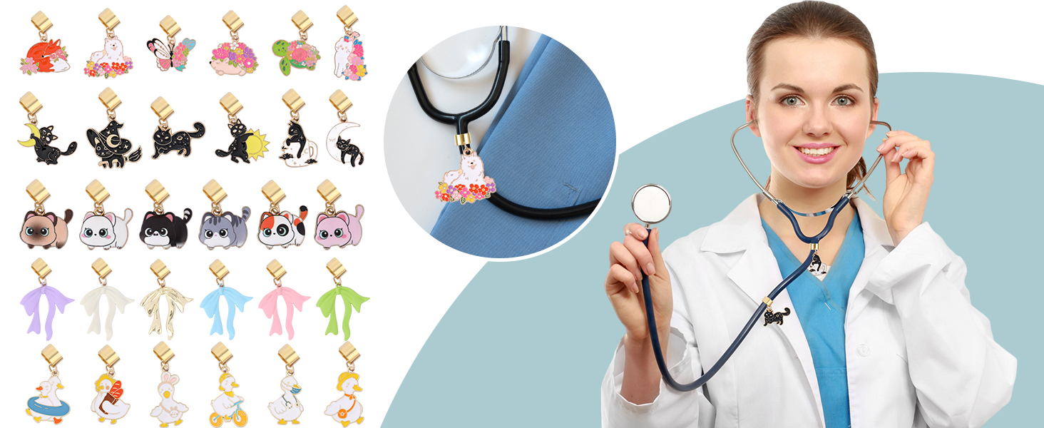 تصميمات لطيفة على شكل كلب: تتضمن 10 حليات لسماعة الطبيب تتميز بجرو مختلف، مثالية لأطباء الأطفال، وممرضات الطوارئ، وتقنيات الطبيب البيطري، ومحترفي الرعاية الصحية الذين يرغبون في إظهار شغفهم بأناقة.