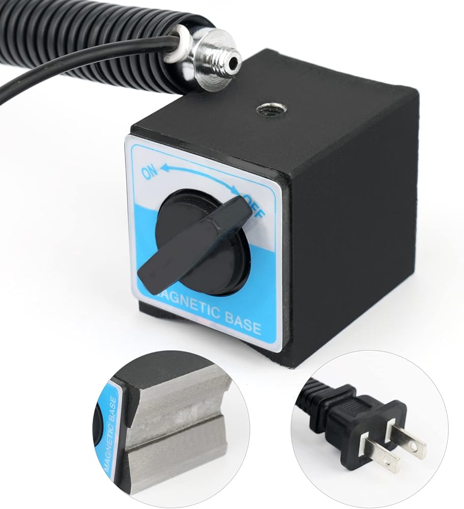 قاعدة مغناطيسية قوية 6T: يمكنك التحكم بحرية في تشغيل المغناطيس أو إيقاف تشغيله لربطه بمعدن الجهاز. يمكن تركيبه على معظم الآلات المعدنية، فالمواقع المعدنية الأكثر سمكًا ستؤدي إلى مغناطيسية أكبر، وأوصي بوضعه عموديًا فوق الجهاز لمزيد من الثبات.