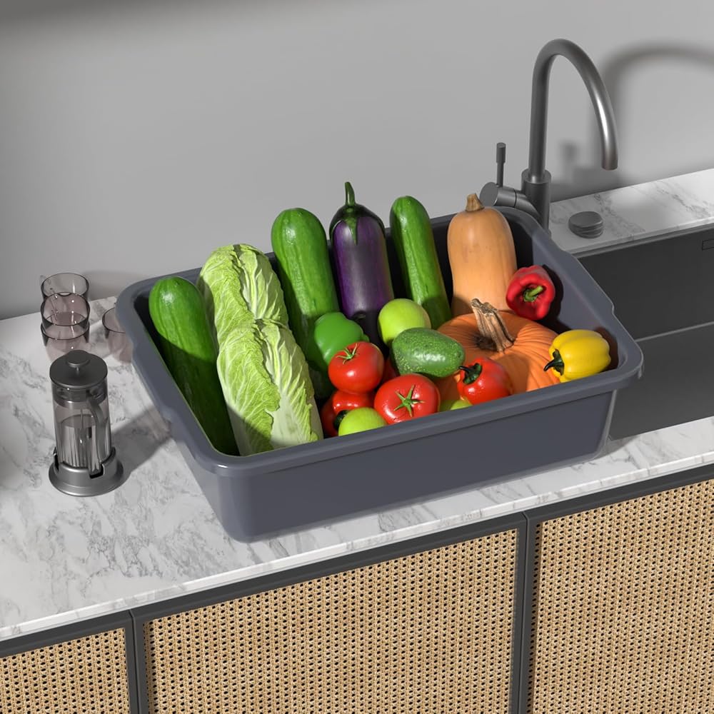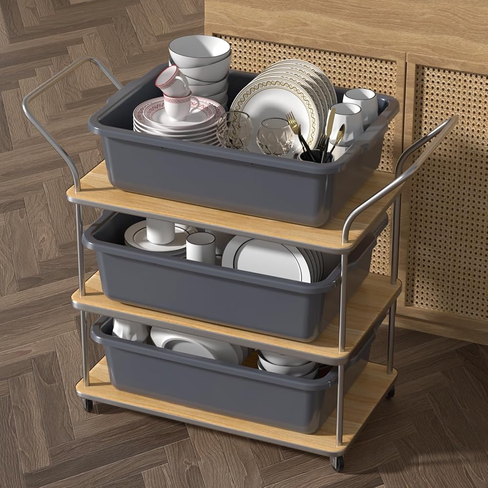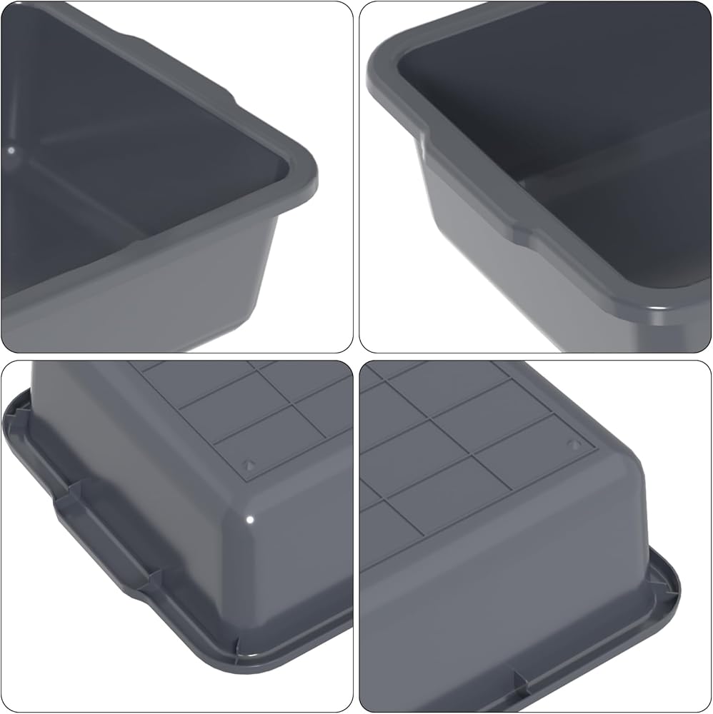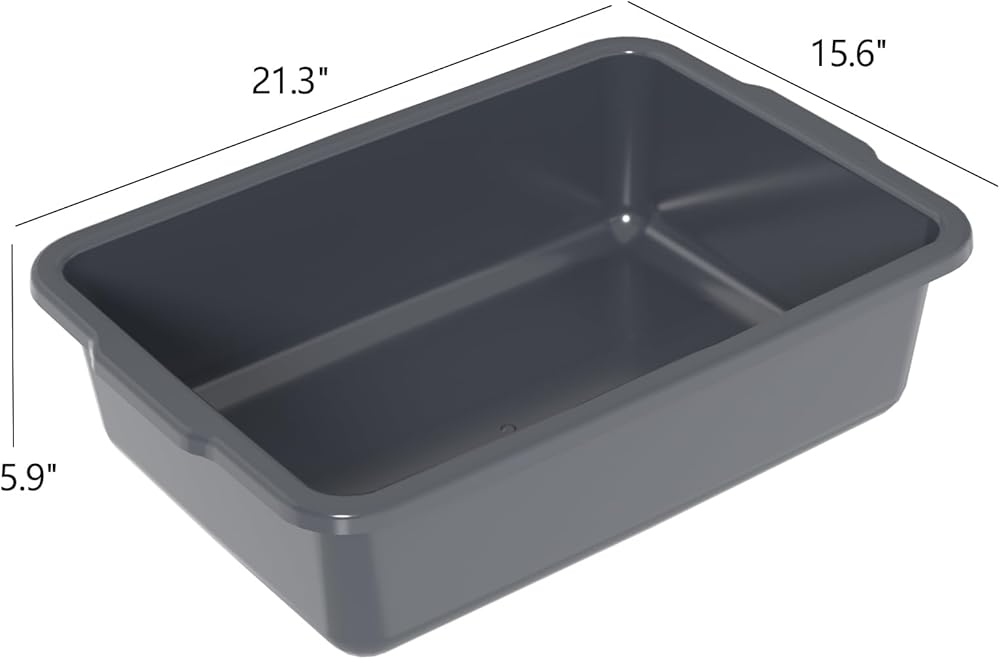 4 عبوات من صناديق الحافلات التجارية البلاستيكية سعة 24 لترًا، حوض حافلات المرافق للمطعم، باللون الرمادي