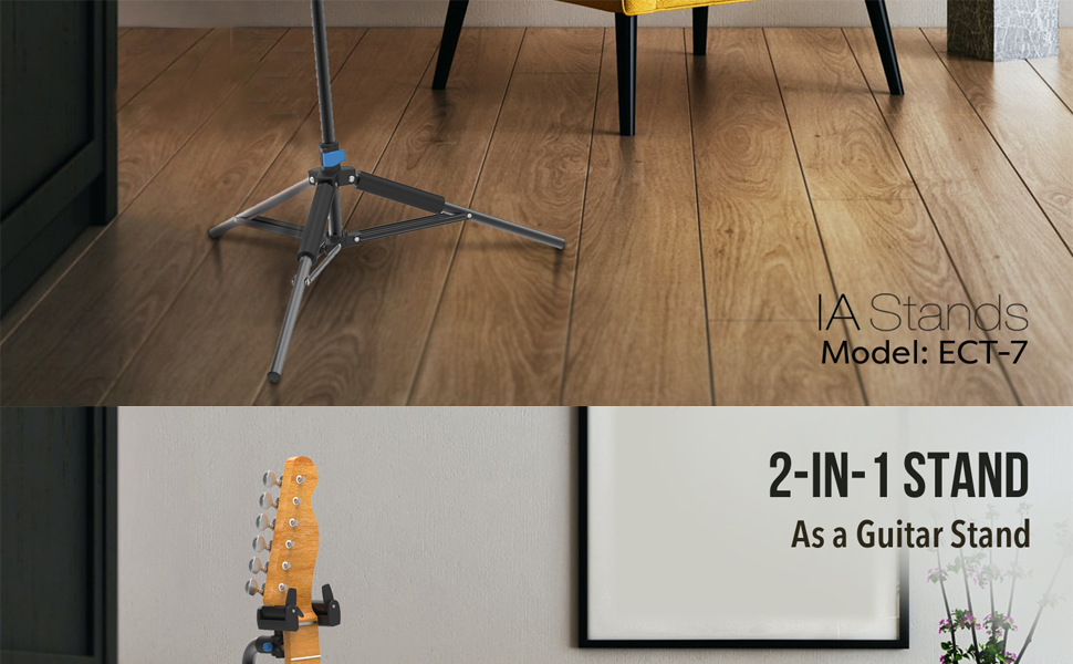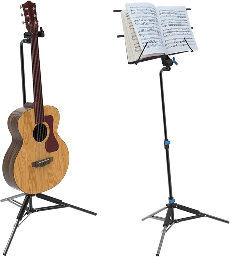 تتضمن - قاعدة ثلاثية القوائم متعددة الأغراض، وحامل جيتار واحد، وحامل ورقة موسيقية. من بين ملحقات الجيتار الكهربائي الأكثر فائدة، ملحقات الجيتار الصوتي أو ملحقات الجيتار الجهير
