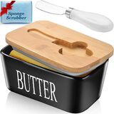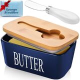【طبق زبدة مع غطاء آمن وعالي الجودة على سطح الطاولة】طبق الزبدة الخاص بنا مع غطاء لسطح الطاولة يستخدم بورسلين آمن وغير ضار بدرجة احترافية غير لاصقة. يمكنك وضعها بأمان في الأفران وأفران الميكروويف وغسالات الأطباق والثلاجات. على عكس المواد الاصطناعية، فإن مادة غطاء الخيزران الخاصة بنا صلبة وسميكة للغاية. لن تتقدم في السن أو تتلف بسهولة، فالشفرة الموجودة على أخدود غطاء الزبدة مصنوعة من الفولاذ المقاوم للصدأ لحماية صحتك أنت وعائلتك.