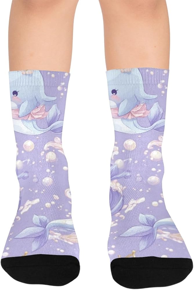 جوارب صيفية للمشي لمسافات طويلة بتصميم دلافين باستيل - جوارب شتوية حرارية سميكة دافئة للأولاد والبنات للمدرسة، والارتداء اليومي والأنشطة الخارجية