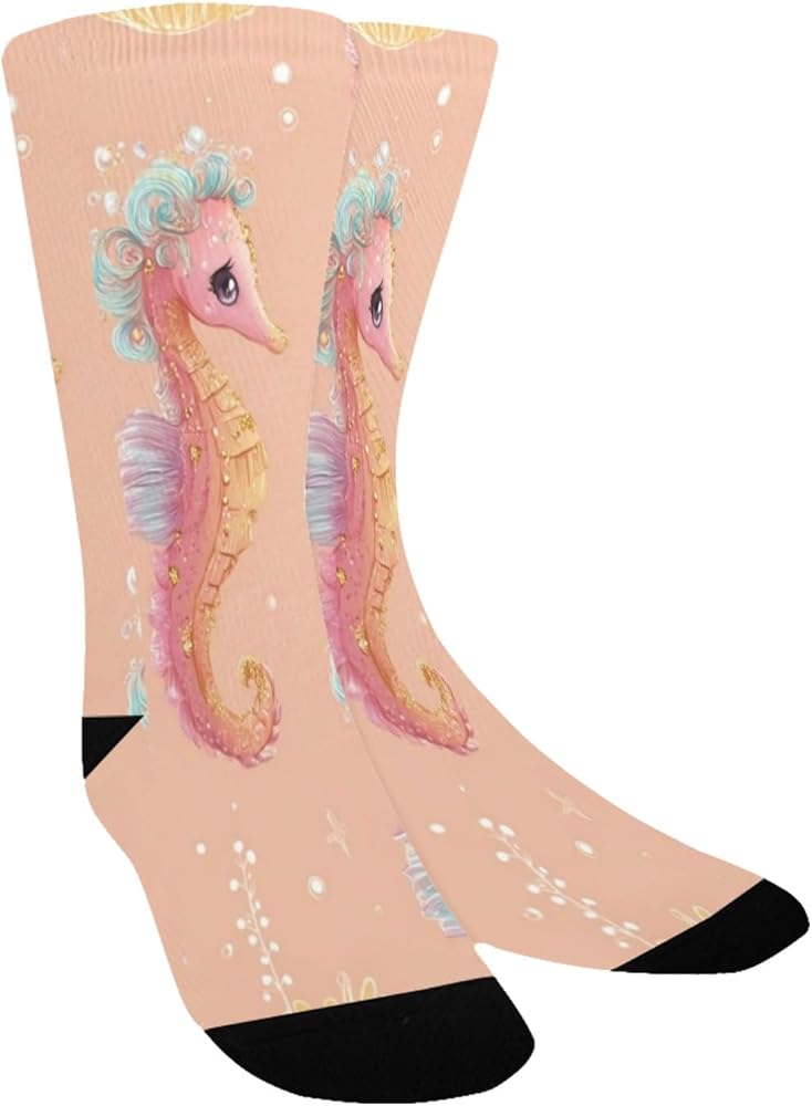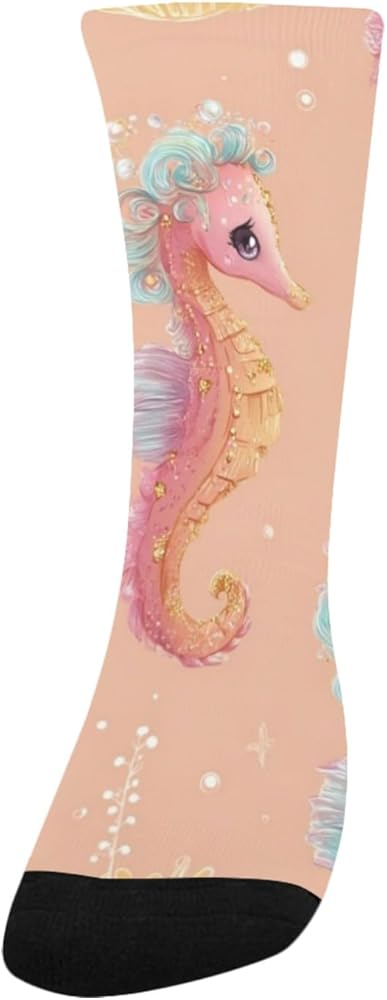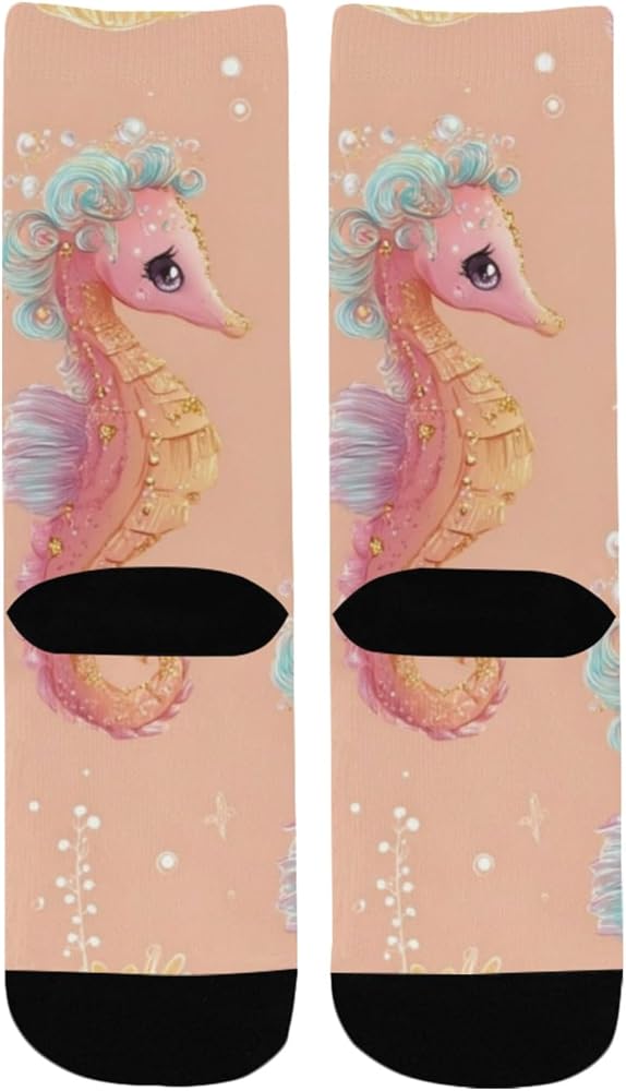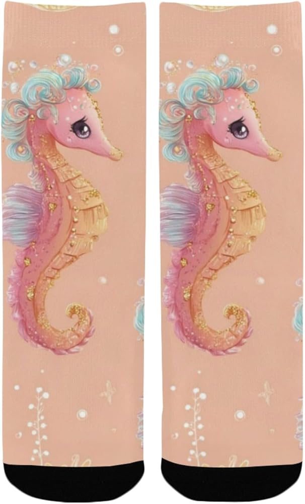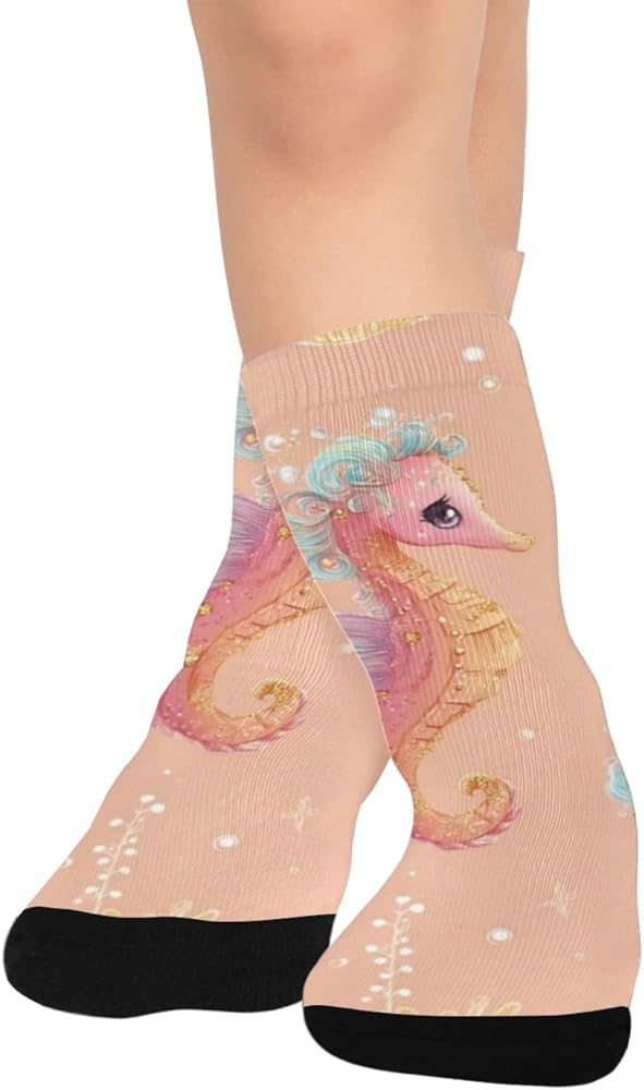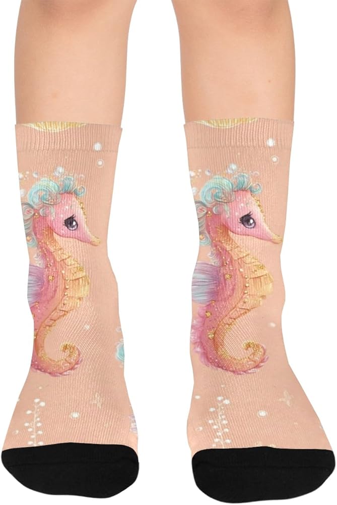 جوارب التنزه سيرًا على الأقدام بنمط فرس البحر الباستيل - جوارب شتوية حرارية سميكة دافئة للأولاد والبنات للمدرسة، والارتداء اليومي والأنشطة الخارجية