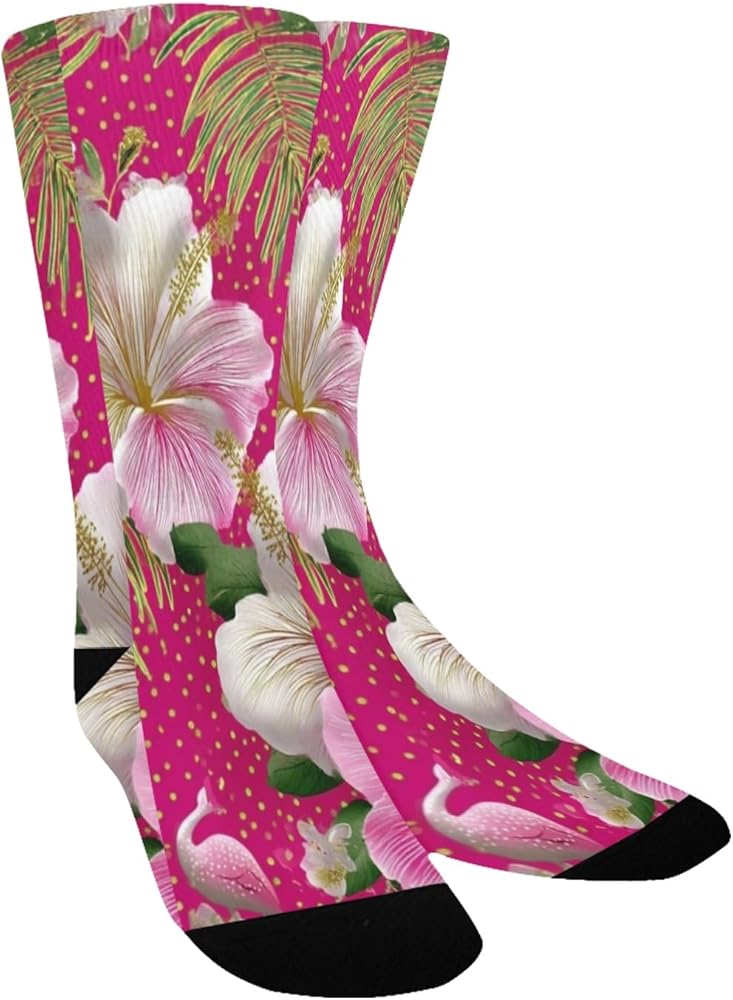 جوارب المشي لمسافات طويلة بطباعة فلامنغو باللون الوردي - جوارب شتوية حرارية سميكة دافئة للأولاد والبنات للمدرسة، والارتداء اليومي والأنشطة الخارجية