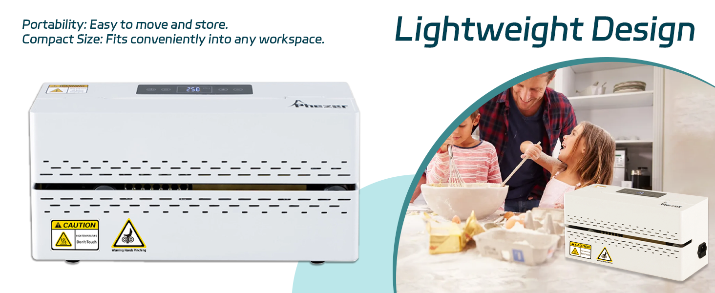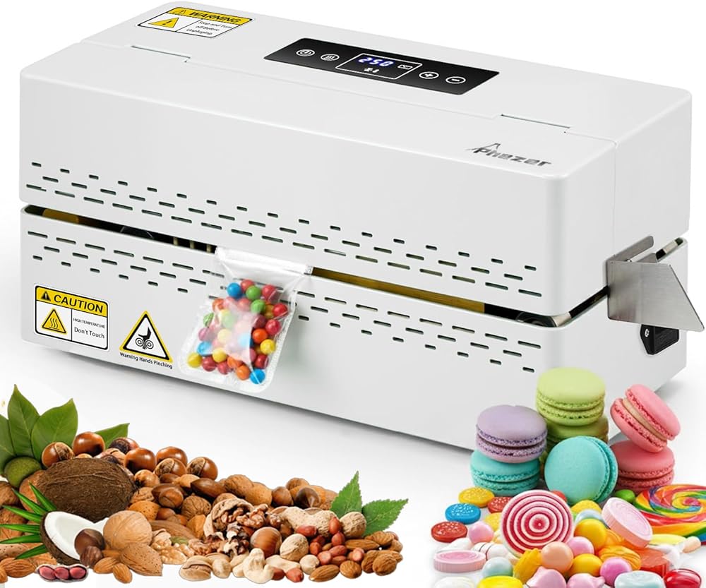 آلة ختم الحرارة المستمرة من Phezer، سدادة شريط أكياس بلاستيكية تجارية أوتوماتيكية مع تحكم رقمي 0-250 درجة مئوية وإيقاف تلقائي، سدادة شريط محمولة 7 م/دقيقة لتغليف المواد الغذائية والمخبوزات والوجبات الخفيفة (110 فولت)
