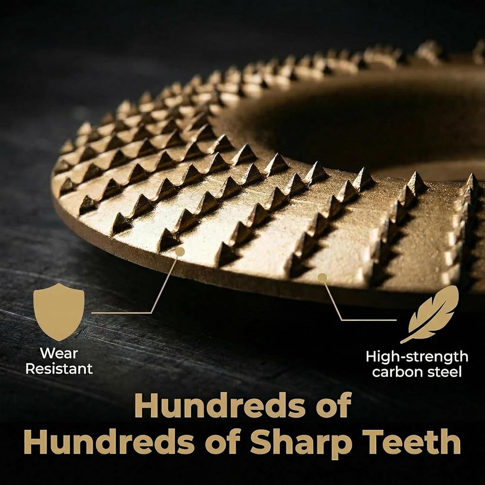【ANTI-CLOGGING DESIGN】Each angle grinder wood carving disc features precise tooth spacing, ensuring efficient cutting while allowing wood chips to be discharged smoothly. This effectively prevents overheating and efficiency loss caused by clogging, guaranteeing smooth and stable operation during prolonged use.