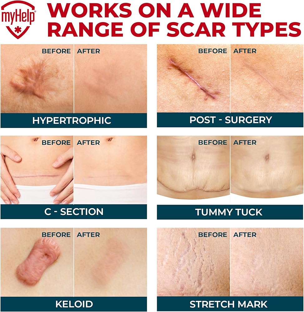 يساعد على تلاشي الندبات - تم تصميم شريط الندبات المصنوع من السيليكون الطبي من ماي هيلب للندبات الجراحية لتوفير تحسن كبير في مظهر الندوب الضخامية والجُدرية والقسم C بعد الحمل وندبات الحروق. مع مرور الوقت، يقدم شريط السيليكون المخصص للندبات فرقًا واضحًا عن طريق تسطيح وتنعيم وتفتيح الندبات القديمة والجديدة.