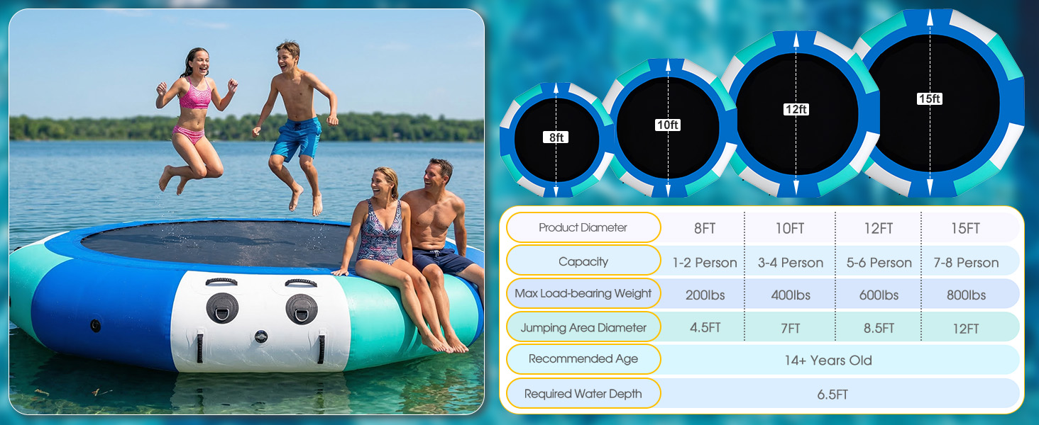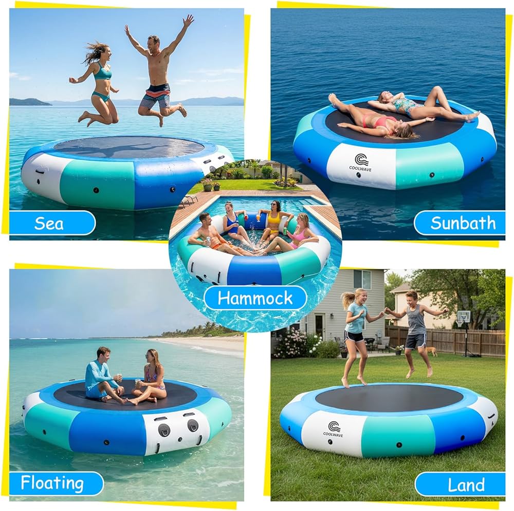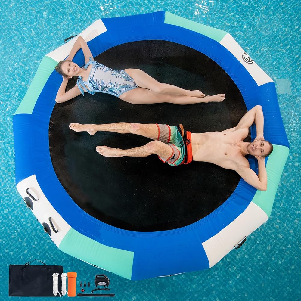 【حارس حقيقي】 هذا الترامبولين المائي مصنوع من مواد تجارية متينة للغاية. على عكس المنتجات الأخرى، يمكننا أن نمنحك متعة الحارس الحقيقي! إنها واحدة من أسهل الألعاب الصيفية التي يمكن اقتناؤها وتبقي عائلتك مشغولة لساعات. بالإضافة إلى ذلك، يمكنك أيضًا قلبها واستخدامها كأرجوحة مائية.