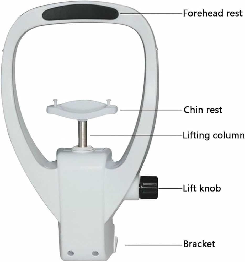 • 【Lifting Adjustment】:Forehead rest and chin holder are equipped with a height adjustment button. The minimum distance from the bottom to the chin rest is 260 mm, the maximum distance is 355 mm.
