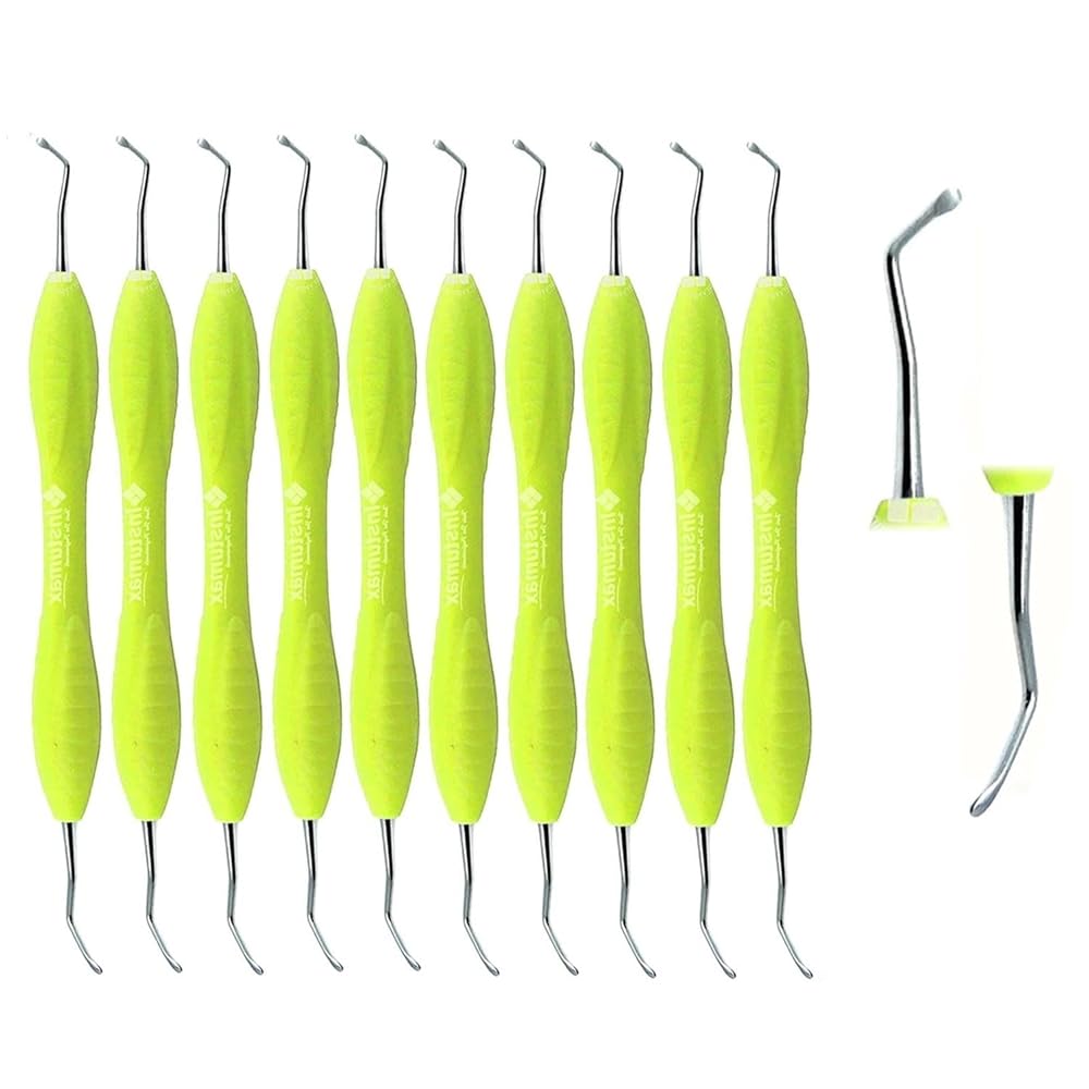 Item Code:1435-Yellow The INSTUMAX Double-Ended Dental Spoon Excavator is a precision instrument designed for efficient and safe caries removal. Crafted from high-quality stainless steel, this durable tool ensures long-lasting performance and resistance to corrosion. Its ergonomic green silicone handle provides a comfortable, non-slip grip, allowing dental professionals to work with maximum control and precision. Ideal for restorative procedures, this spoon excavator is perfect for both clinical and educational settings. Reliable, hygienic, and easy to sterilize, it's an essential addition to every dental instrument kit.