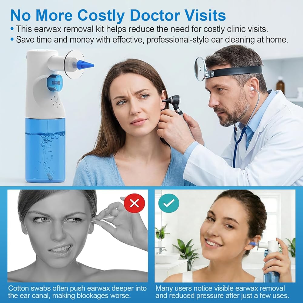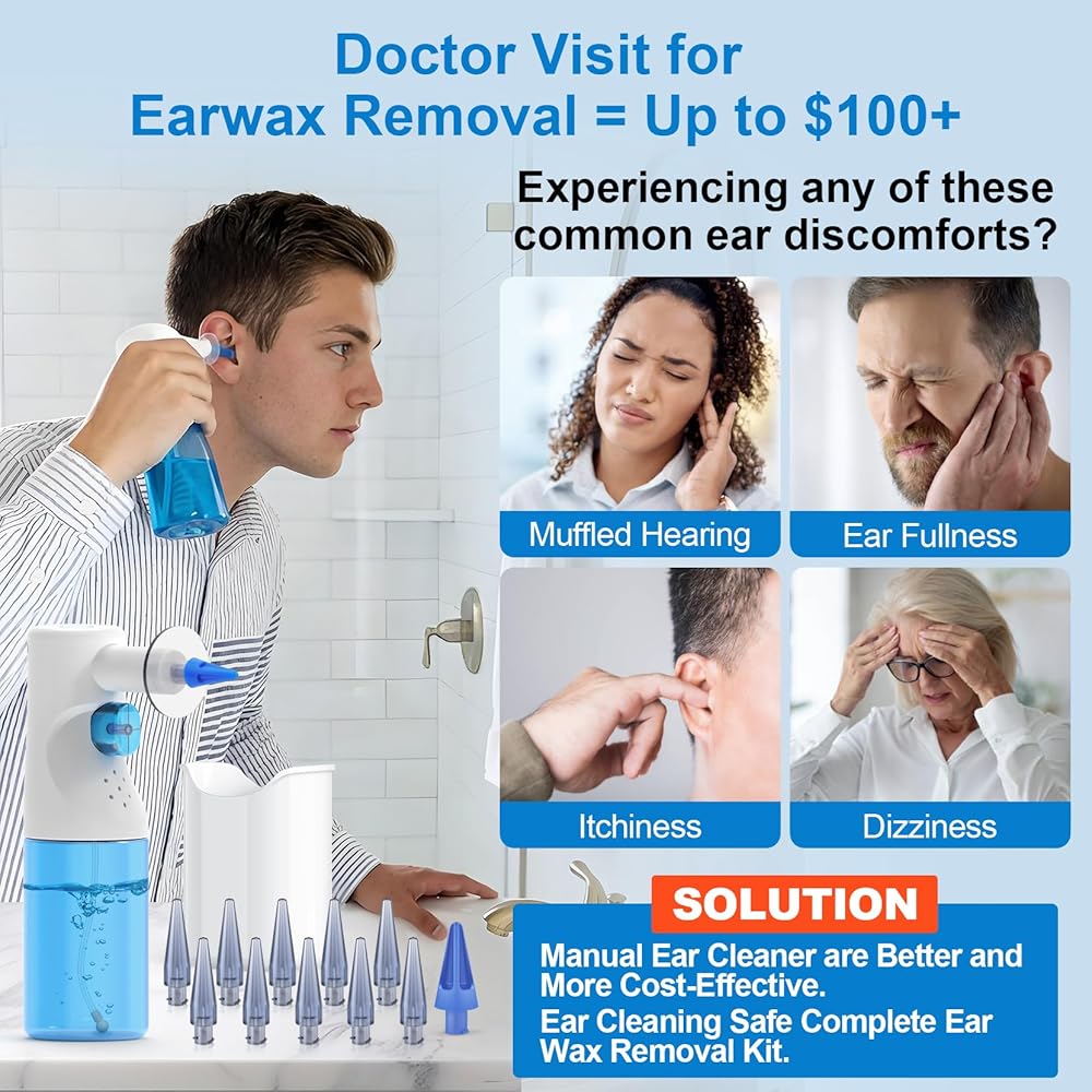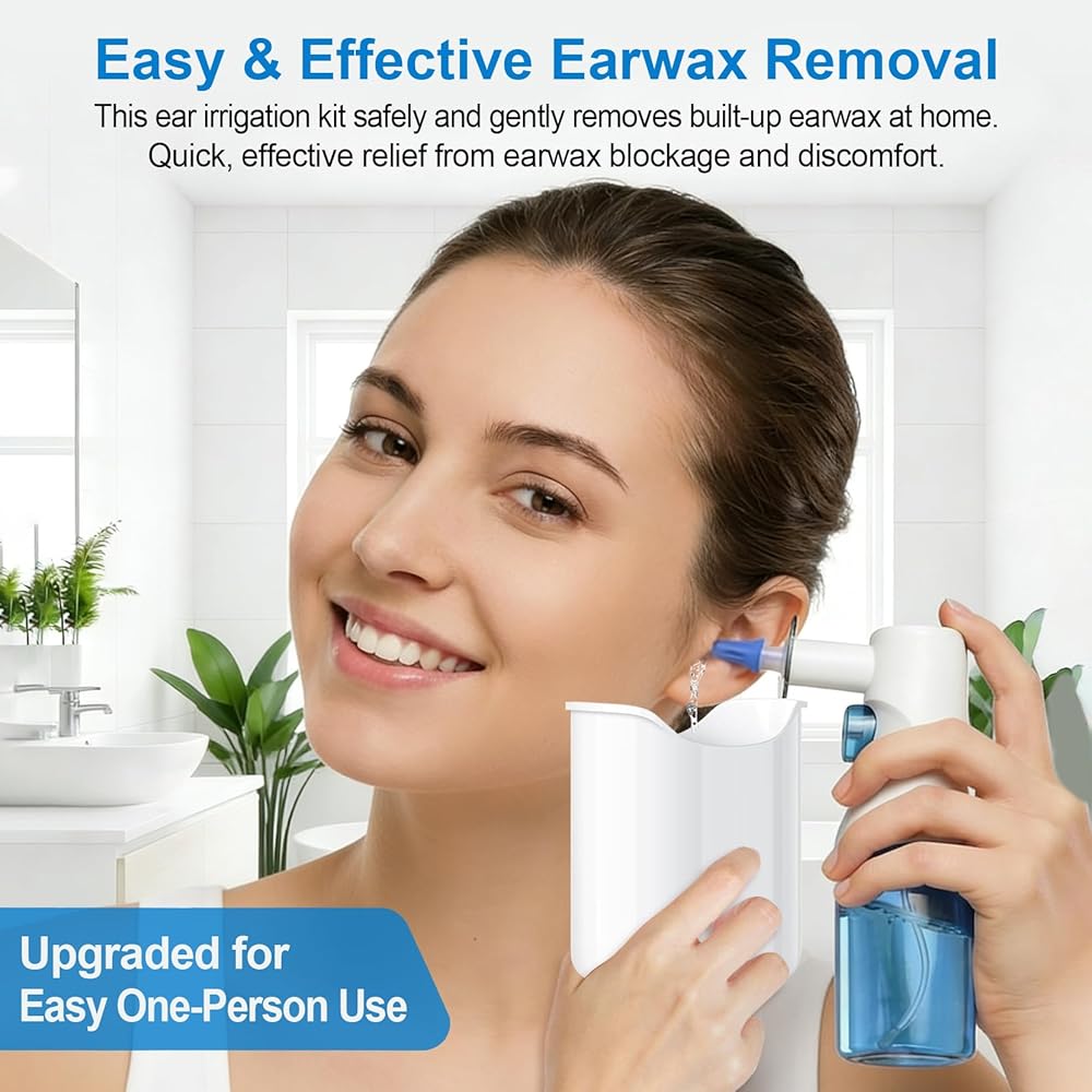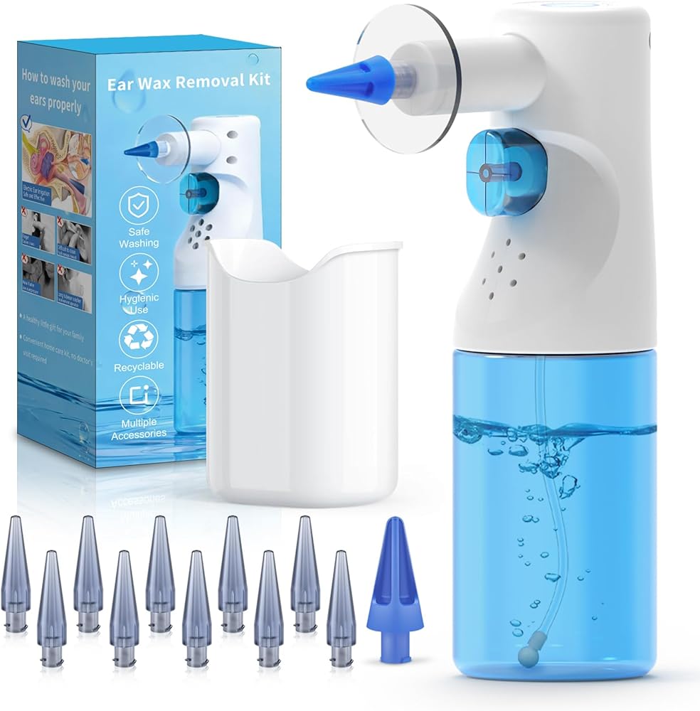 تخطي الزيارات المكلفة باستخدام مجموعة أدوات تنظيف الأذن في المنزل: لماذا تدفع مقابل المواعيد المتكررة؟ تسمح لك مجموعة تنظيف الأذن ومجموعة تنظيف الأذن للبالغين بإزالة شمع الأذن عند الحاجة؛ يختار العديد من المستخدمين مجموعة غسل الأذن هذه كبديل عملي لتنظيف الأذن الروتيني في المنزل؛ تتضمن زجاجة رذاذ لإزالة شمع الأذن، وحوض التقاط، و10 أطراف
