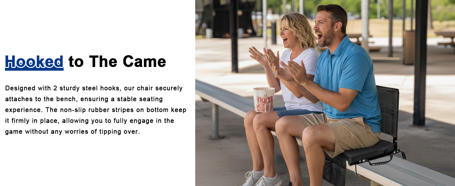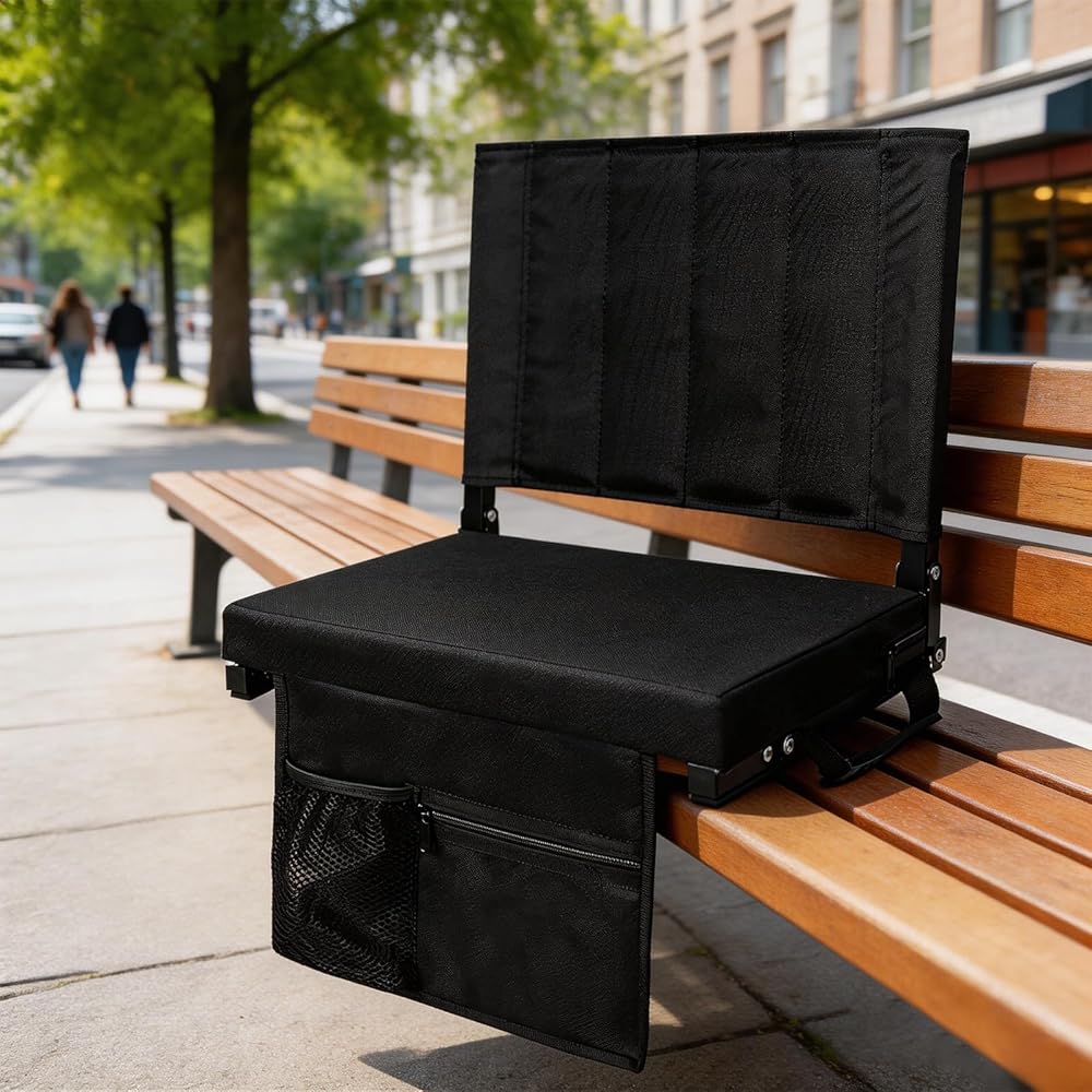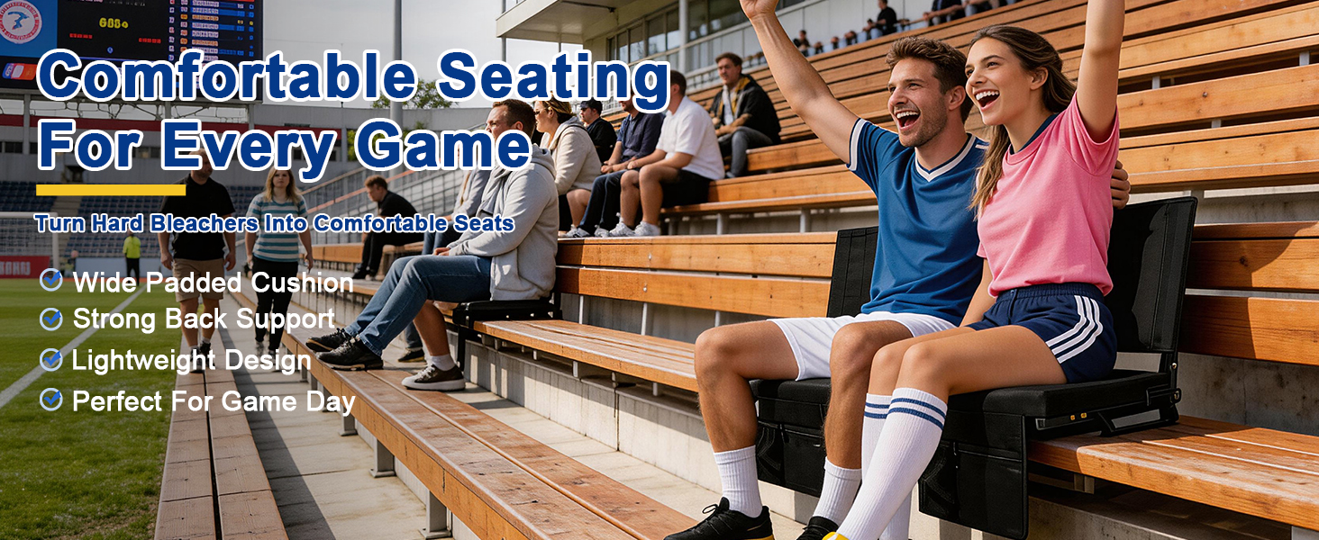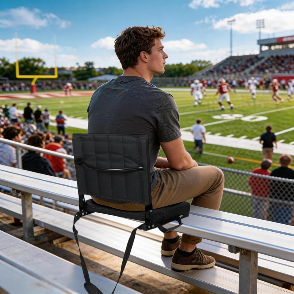 مقعد عريض مبطن لراحة أفضل، صُممت مقاعد الاستاد هذه بمنطقة جلوس بعرض 16.9 بوصة ووسادة إسفنجية عالية المرونة، وتوفر دعمًا مريحًا على المدرجات الصلبة والمقاعد أثناء الألعاب والأحداث الطويلة.