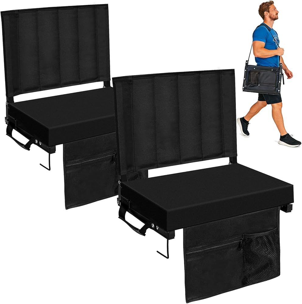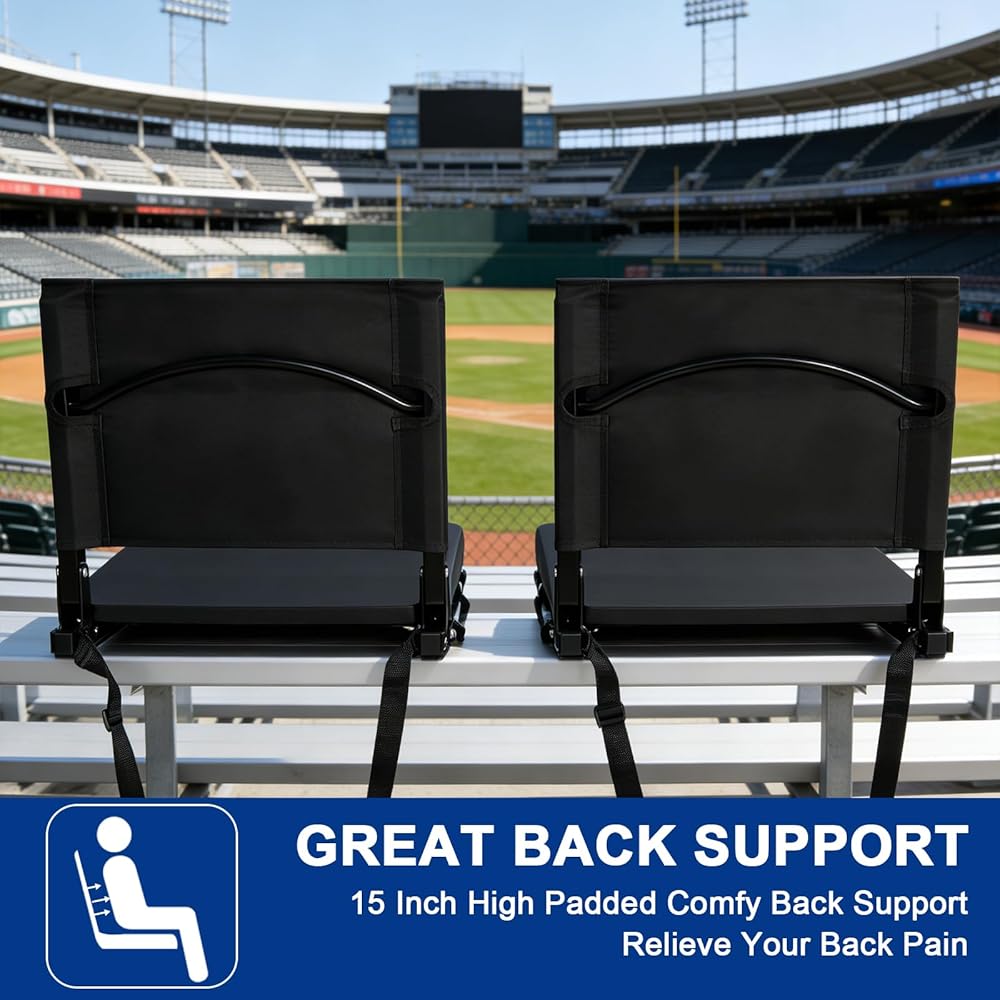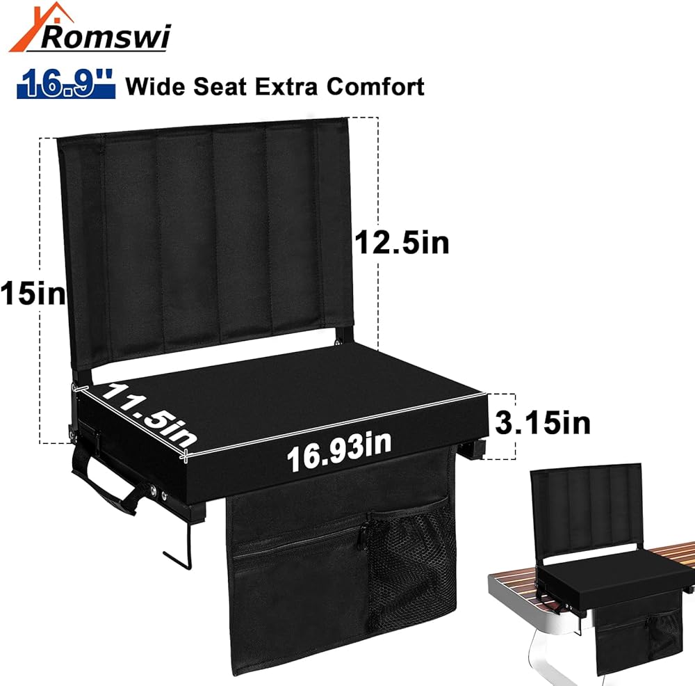 Romswi Stadium Seats for Bleachers with Back Support 2 Pack, Lightweight Portable Bleacher Chairs with Wide Padded Cushion, Folding Stadium Seat with Cup Holder